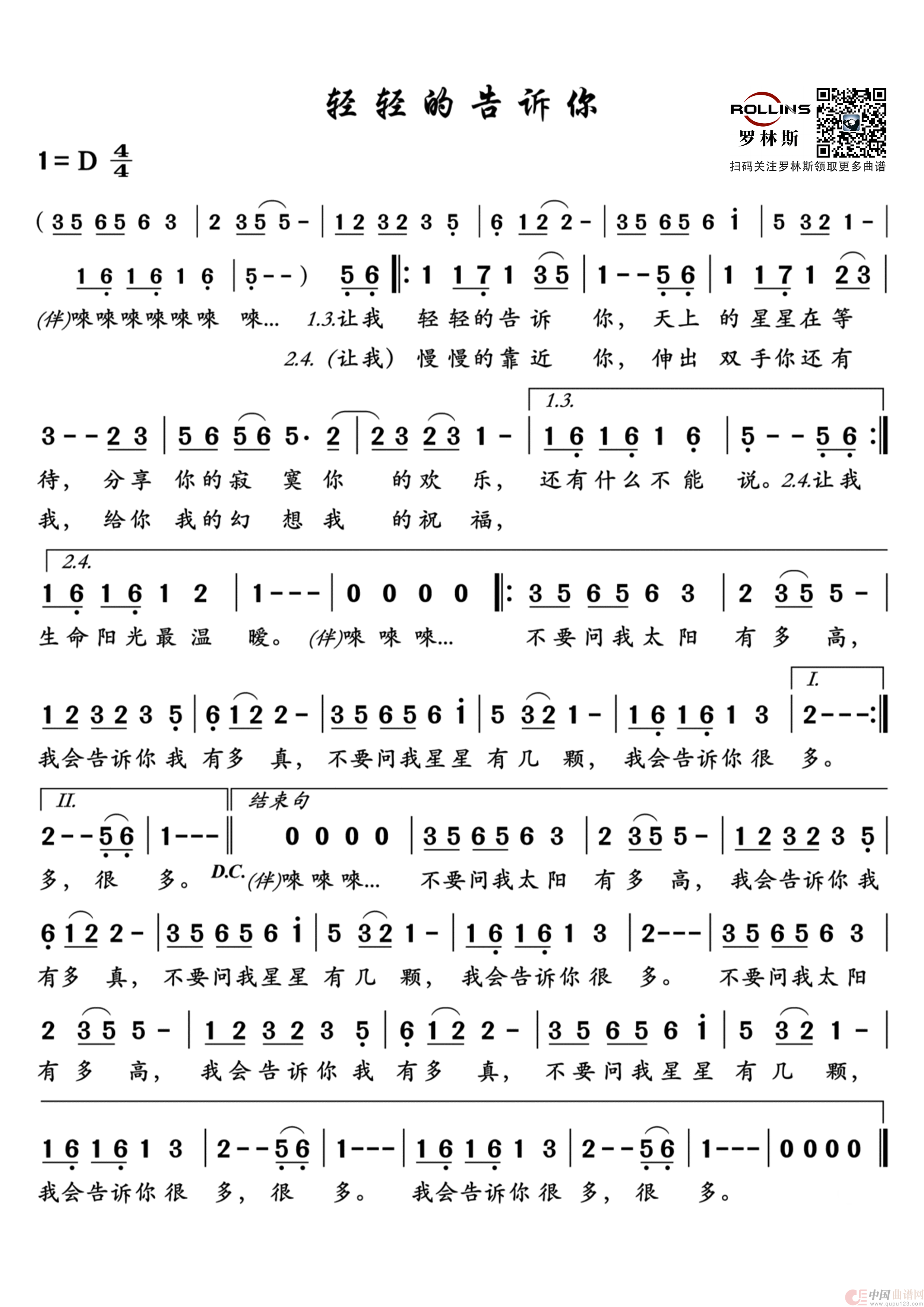 关于《轻轻的告诉你》曲谱的评论