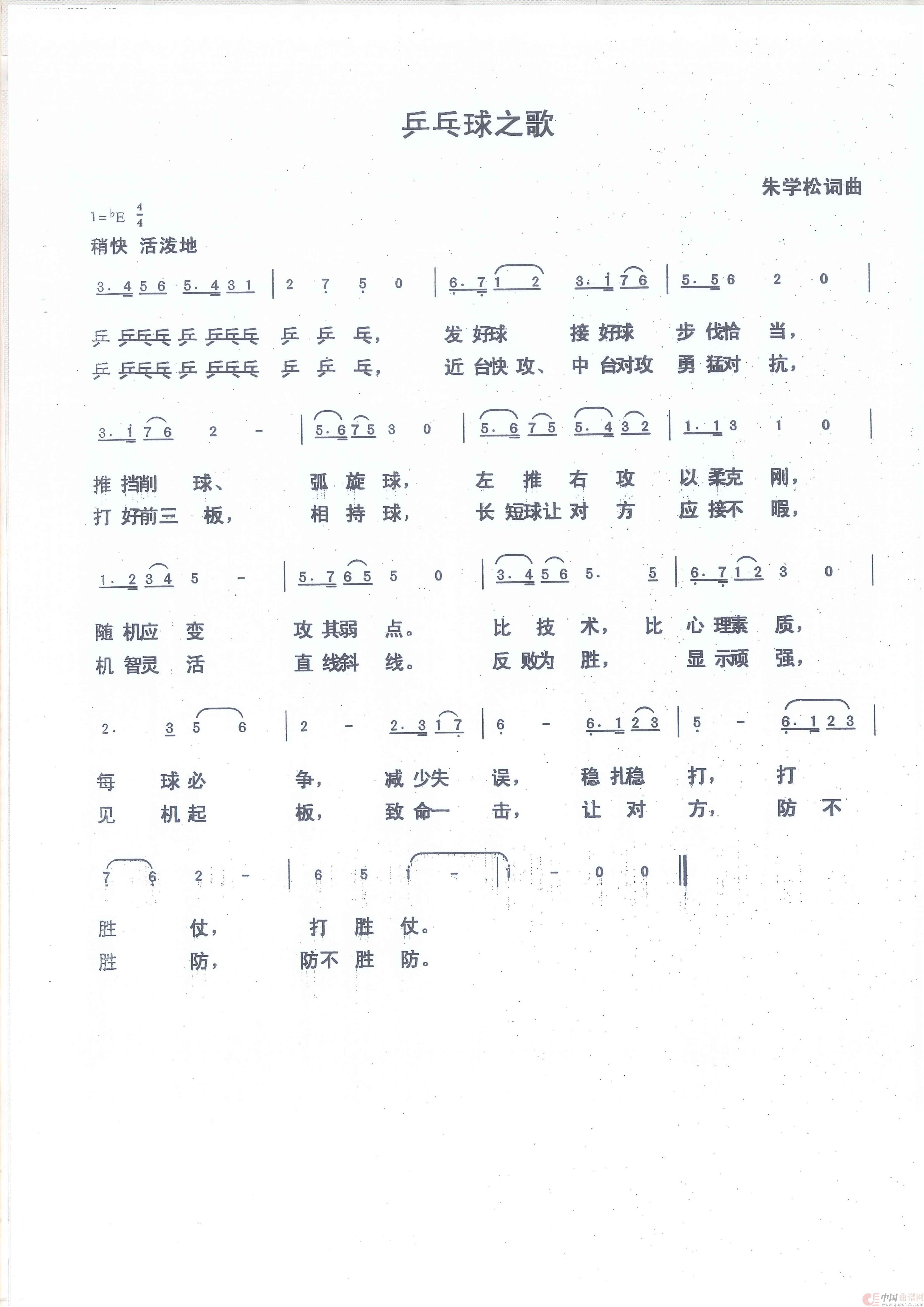 关于《乒乓球之歌》曲谱的评论