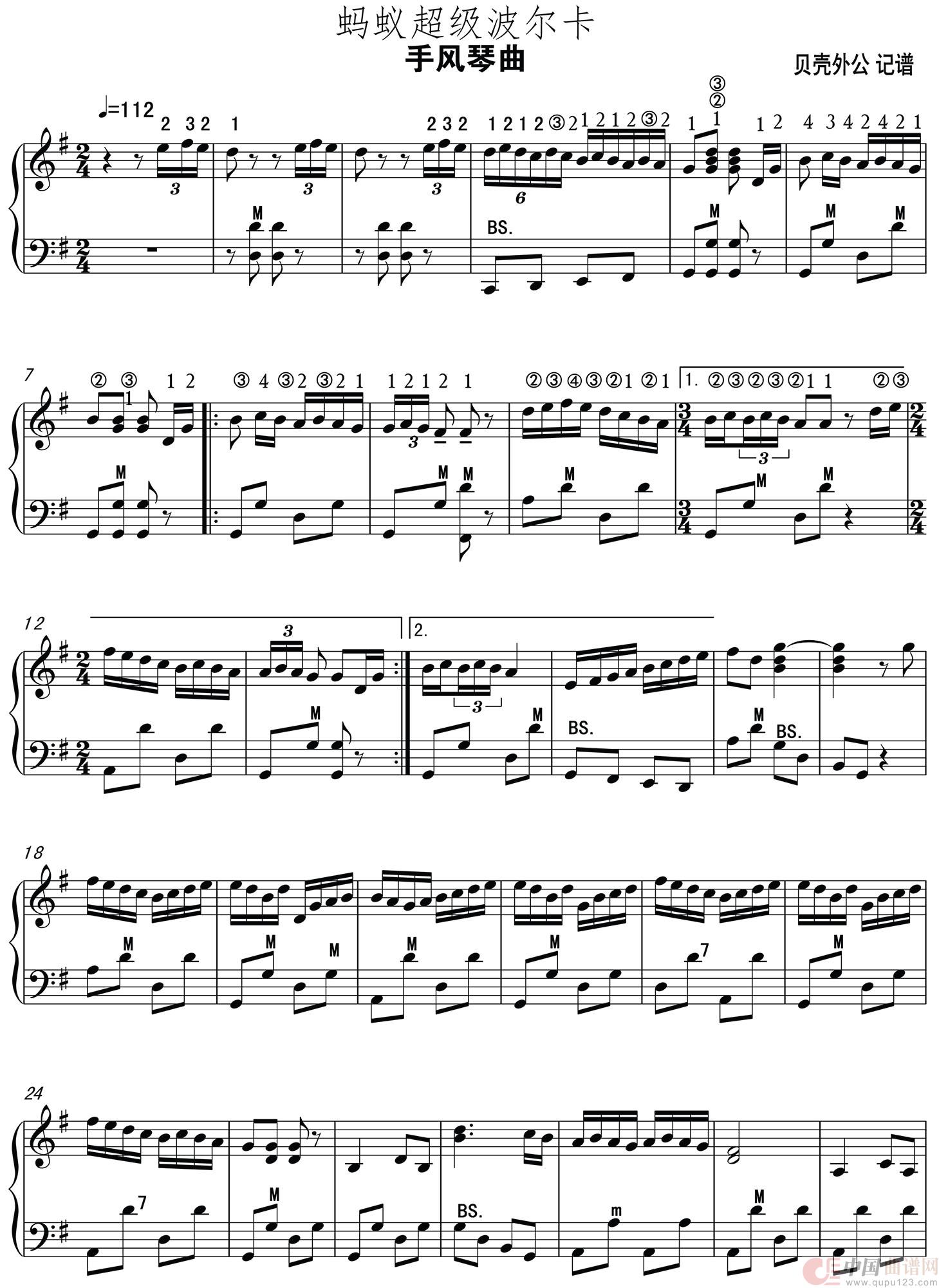 手风琴曲蚂蚁超级波尔卡 - 五线谱