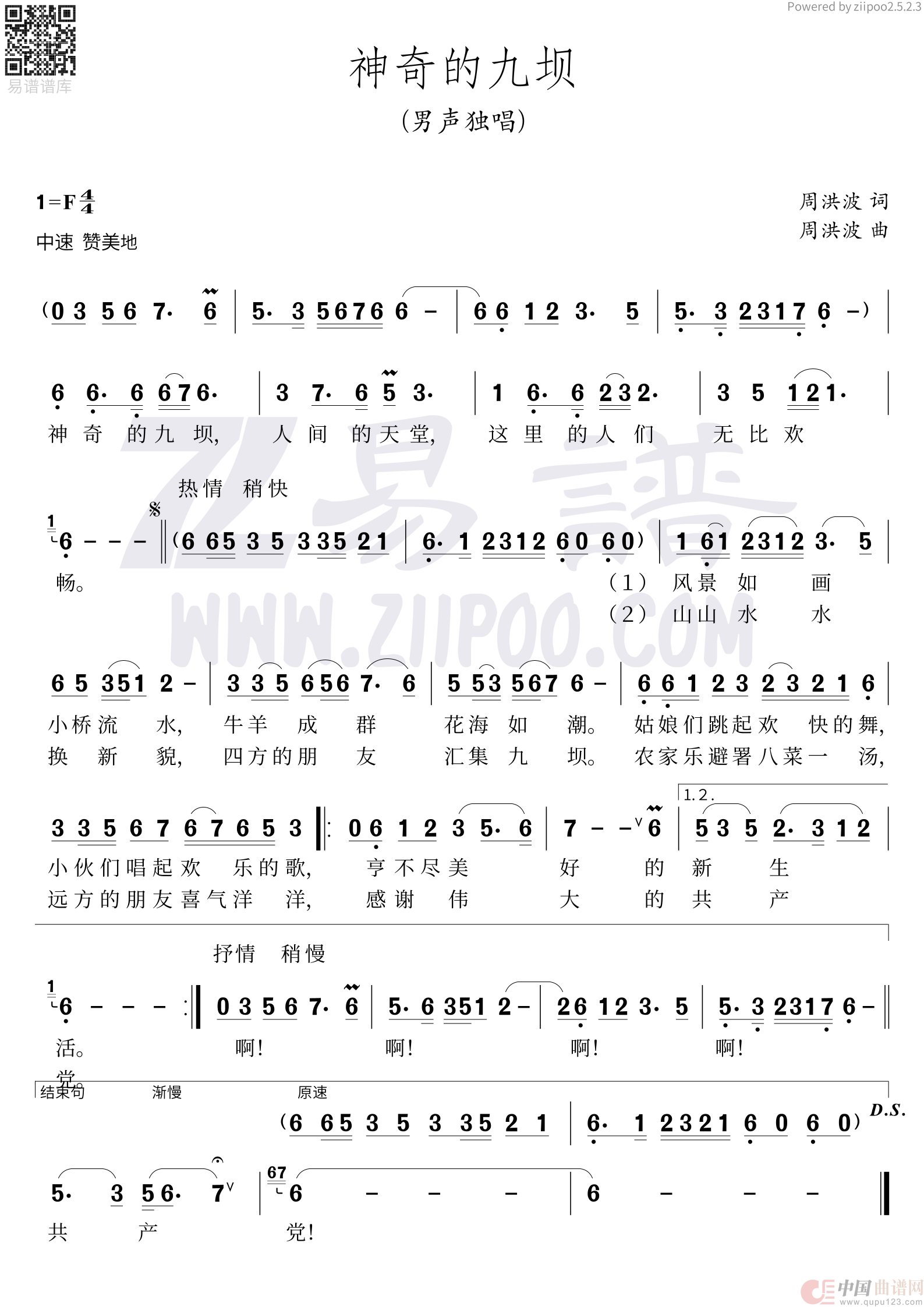 关于《神奇的九坝》曲谱的评论