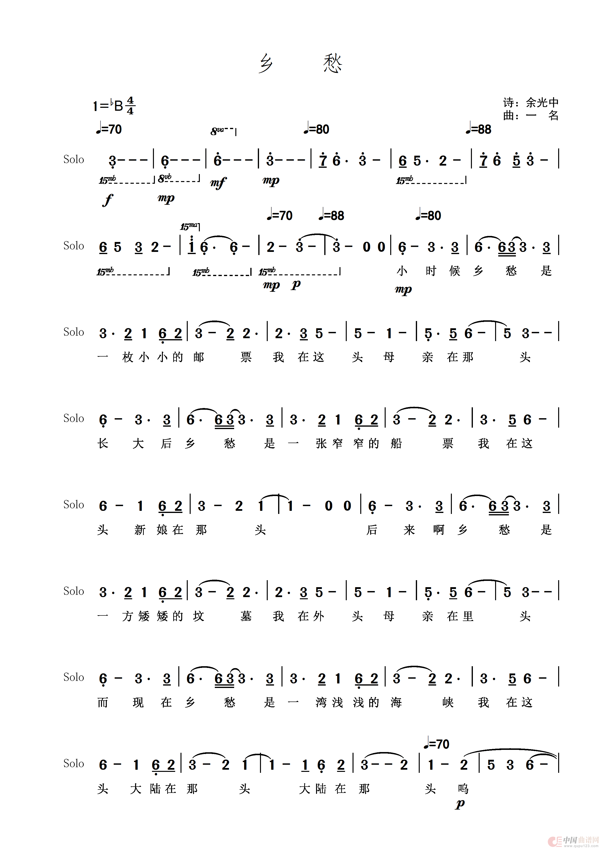 关于《乡愁-简谱》曲谱的评论