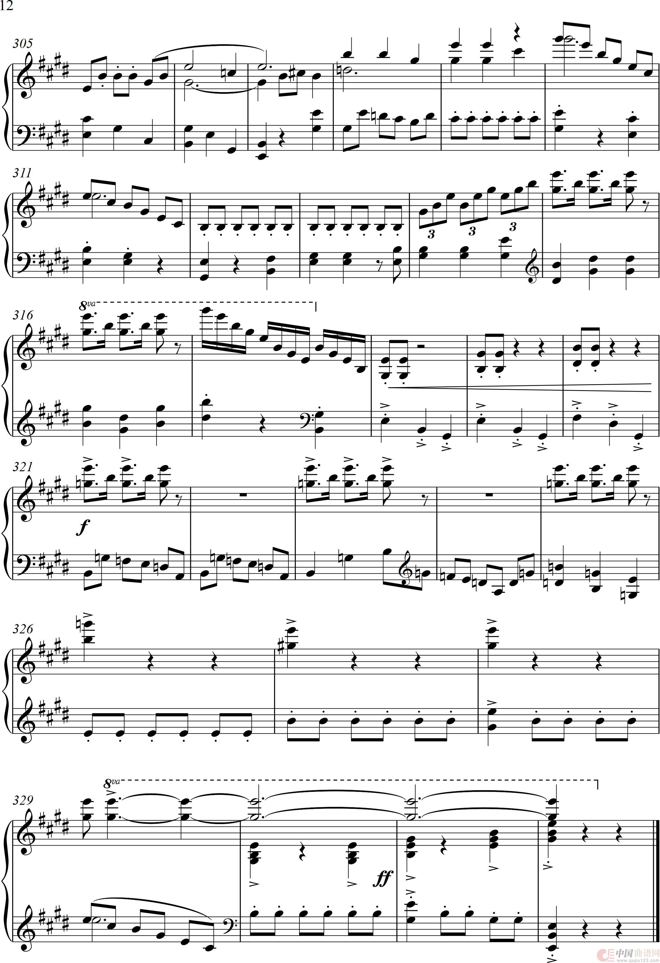 提示:在曲谱图片上单击右键,选择"图片另存为..."即可将曲谱保存到您的电脑中,打印时候可将图片插入到WORD中,调整合适大小打印即可。