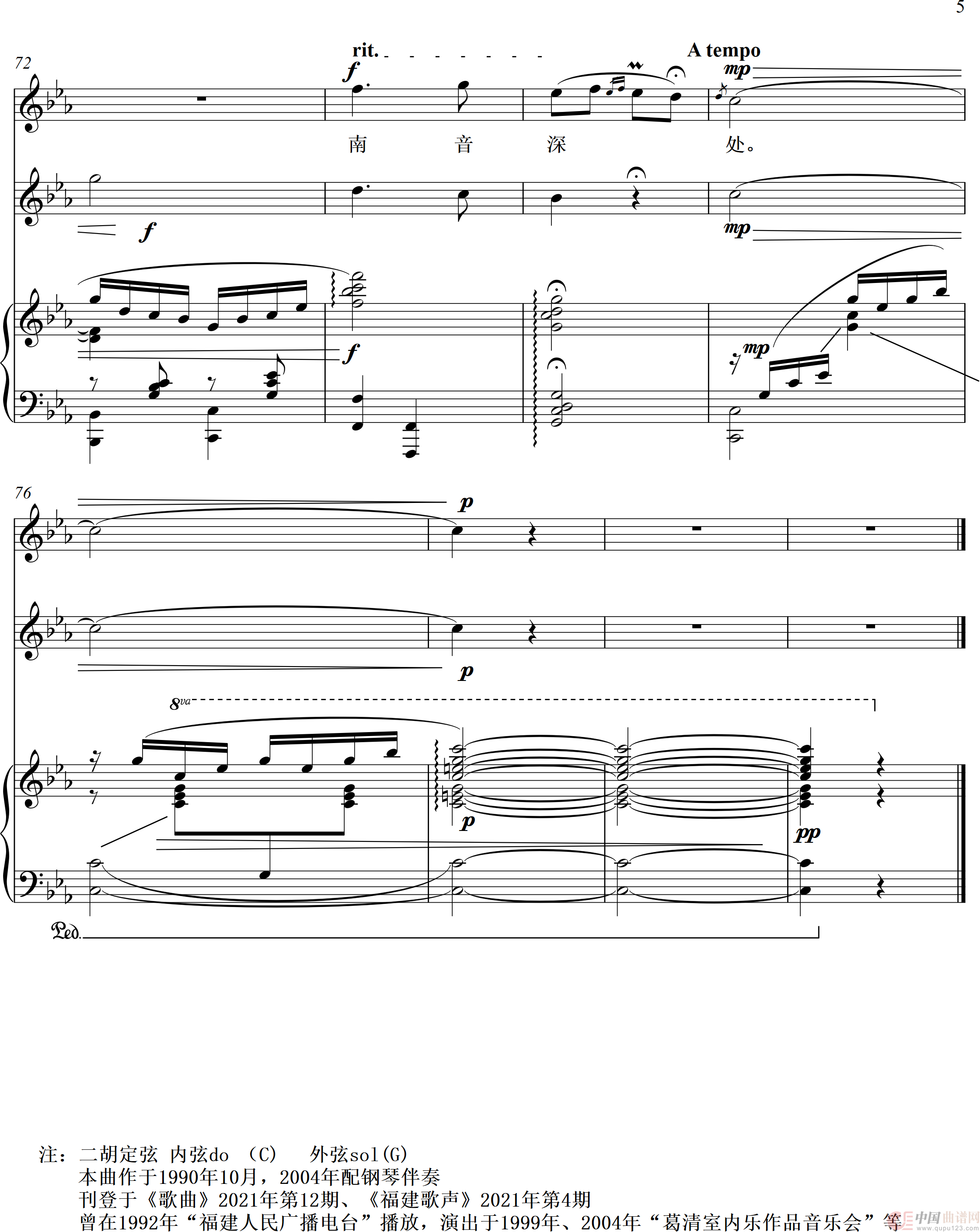 1990年10月创作,2004年编配。刊登《歌曲》2021年第12期,《福建歌声》2021第四期