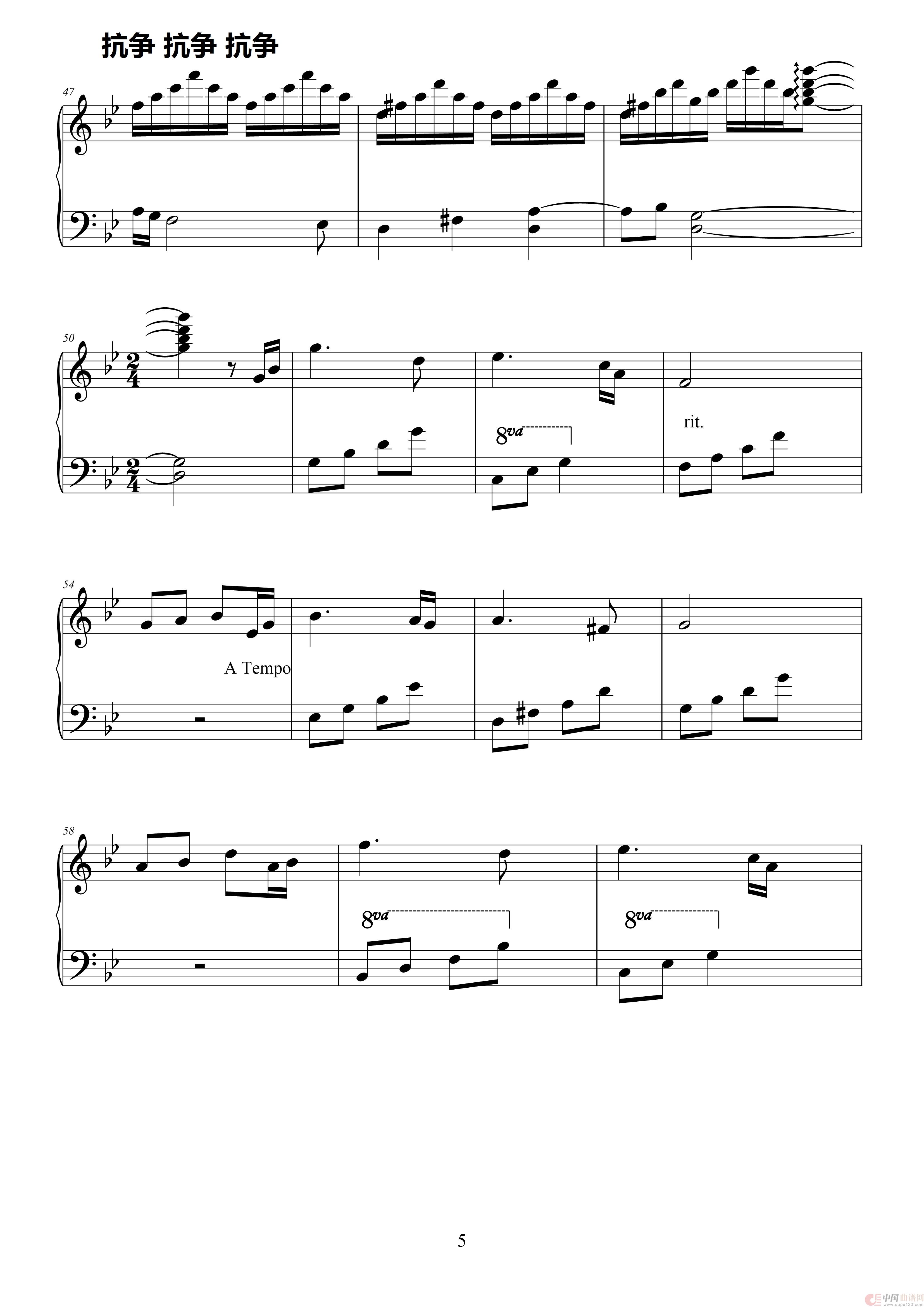 关于《抗争》曲谱的评论