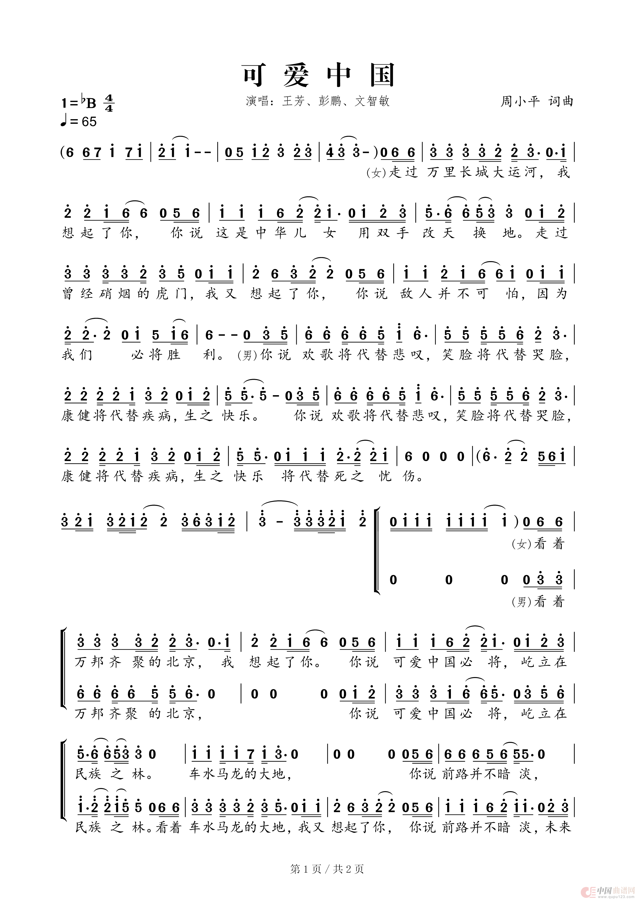 提示:在曲谱图片上单击右键,选择"图片另存为..."即可将曲谱保存到您的电脑中,打印时候可将图片插入到WORD中,调整合适大小打印即可。
