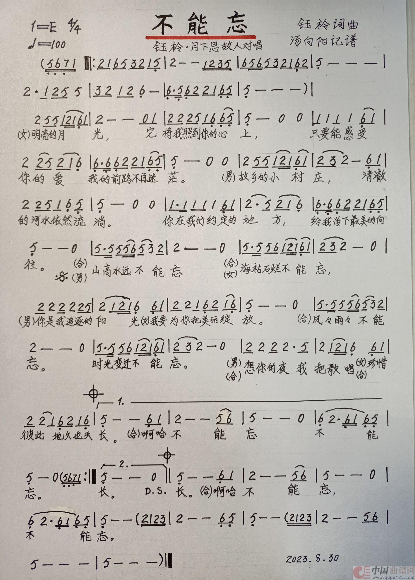 当前位置: 首页 谱友园地 谱友上传 不能忘