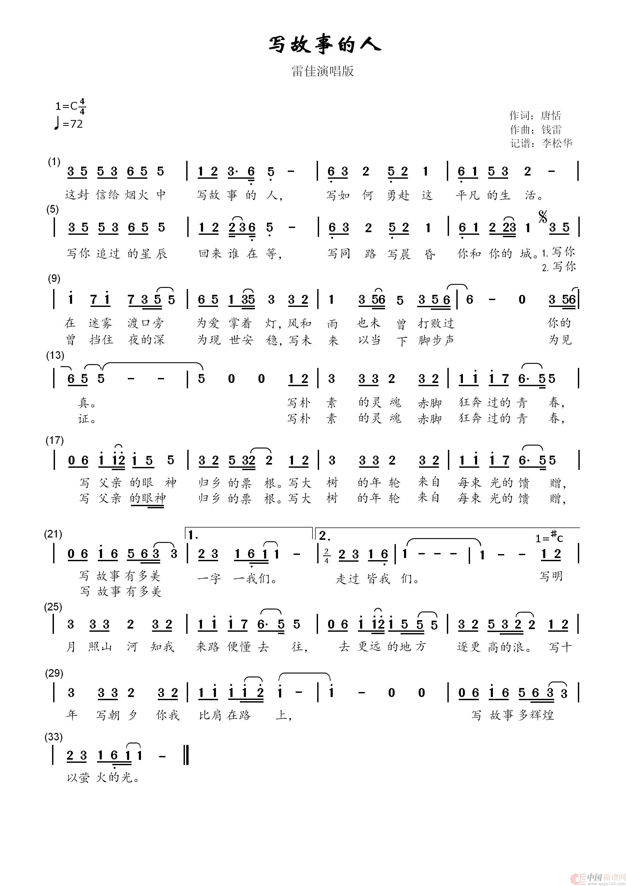 提示:在曲谱图片上单击右键,选择“图片另存为...”即可将曲谱保存到您的电脑中,打印时候可将图片插入到WORD中,调整合适大小打印即可。