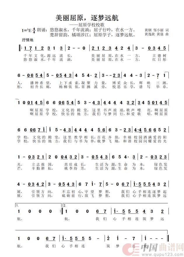 作词:黄钢 邹小丽 作曲:黄逸歆 黄强 演唱(奏):溆浦屈原学校合唱团 来源:溆浦屈原学校 上传:何怡蓉