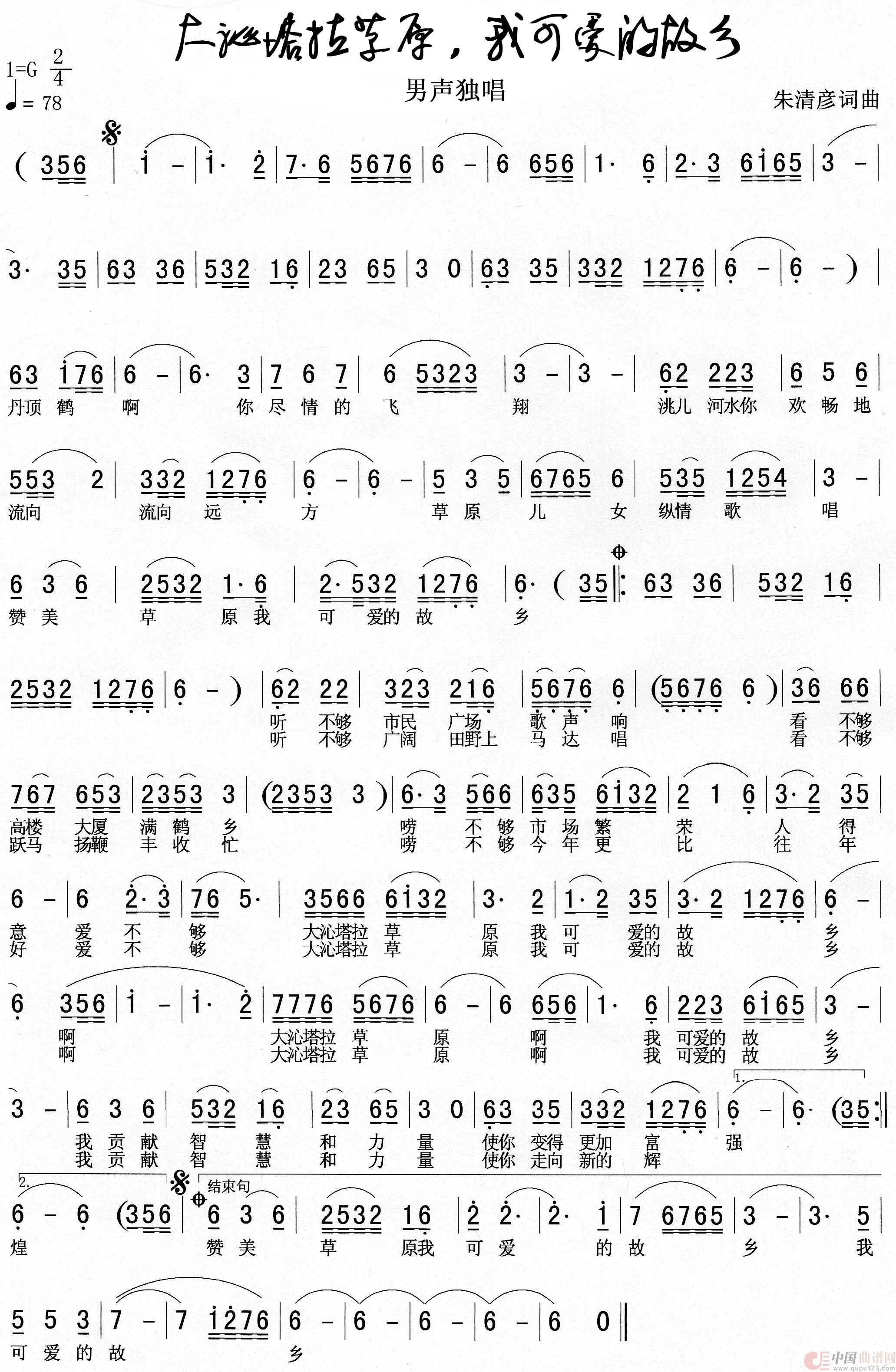 关于《大沁塔拉草原,我可爱的故乡》曲谱的评论