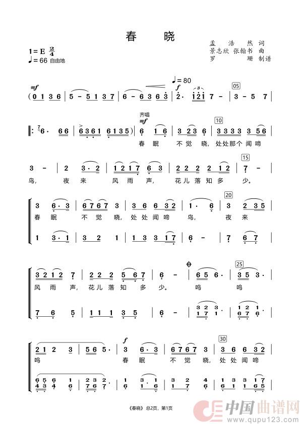 关于《春晓》曲谱的评论