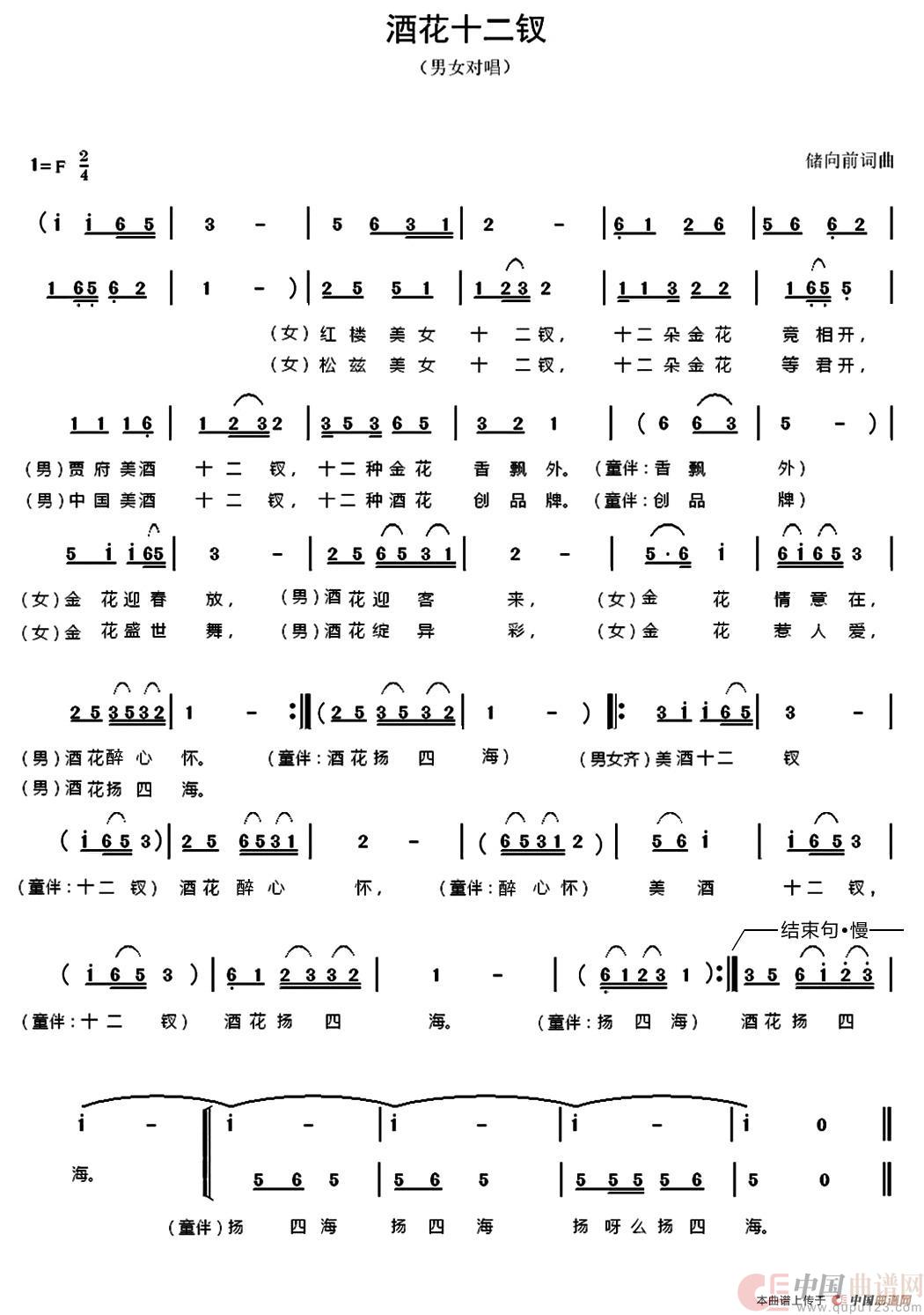 关于《酒花十二钗》曲谱的评论