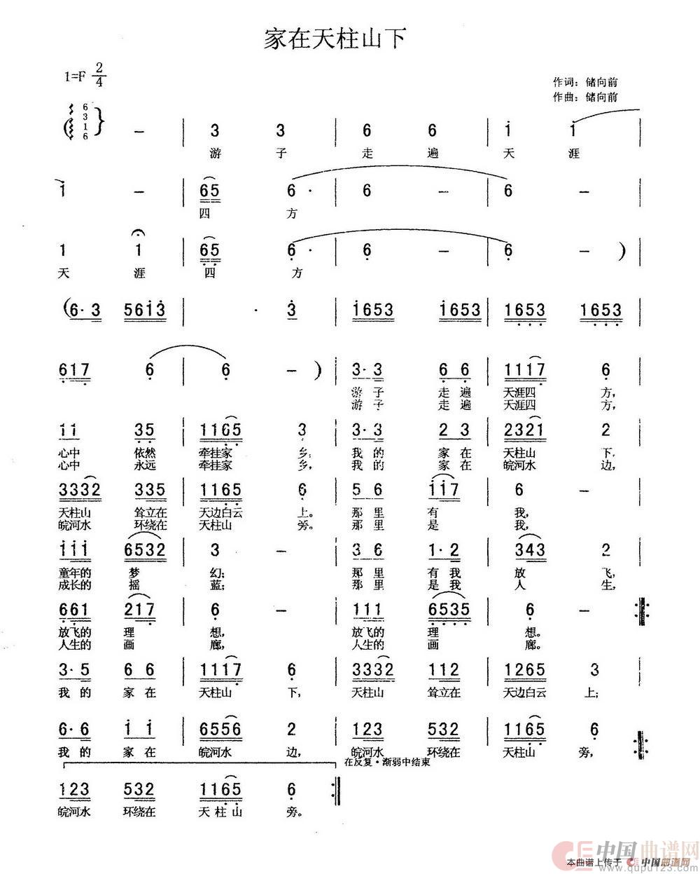 关于《家在天柱山下》曲谱的评论