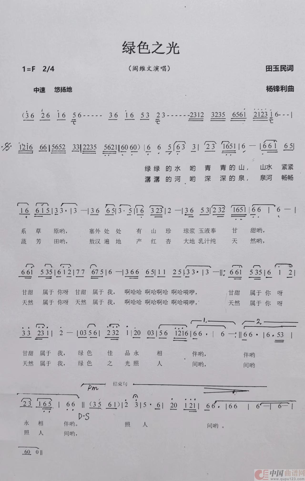 关于《绿色之光》曲谱的评论