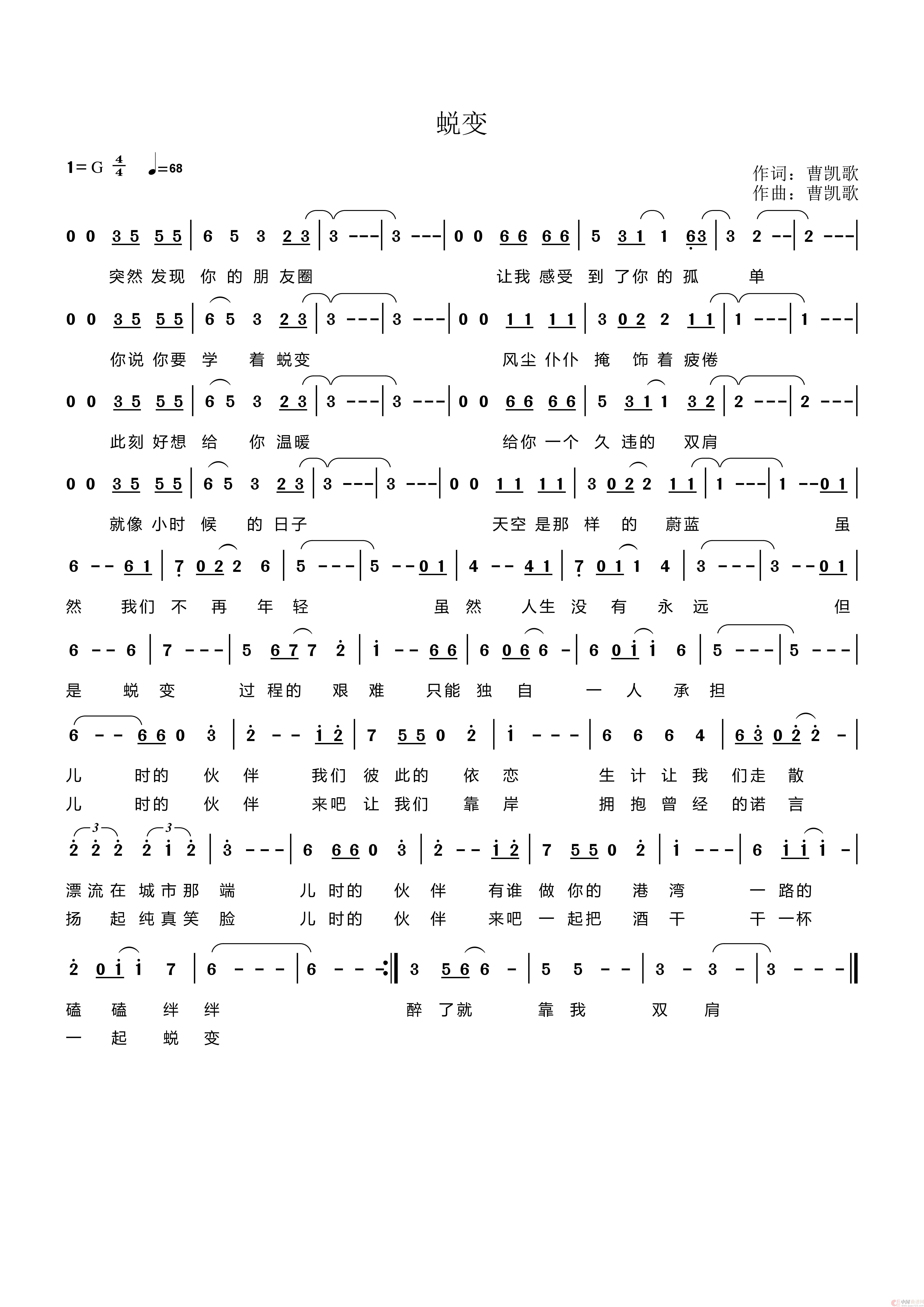 关于《蜕变 一凡》曲谱的评论