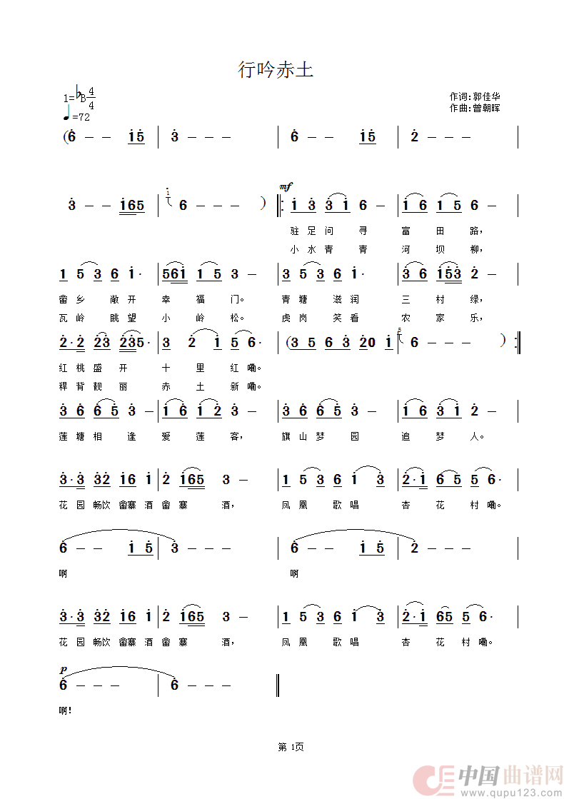 提示:在曲谱图片上单击右键,选择“图片另存为...”即可将曲谱保存到您的电脑中,打印时候可将图片插入到WORD中,调整合适大小打印即可。