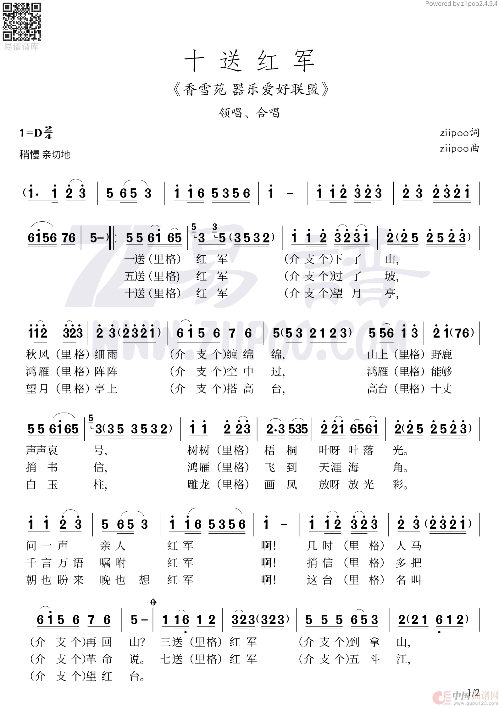 提示:在曲谱图片上单击右键,选择“图片另存为...”即可将曲谱保存到您的电脑中,打印时候可将图片插入到WORD中,调整合适大小打印即可。