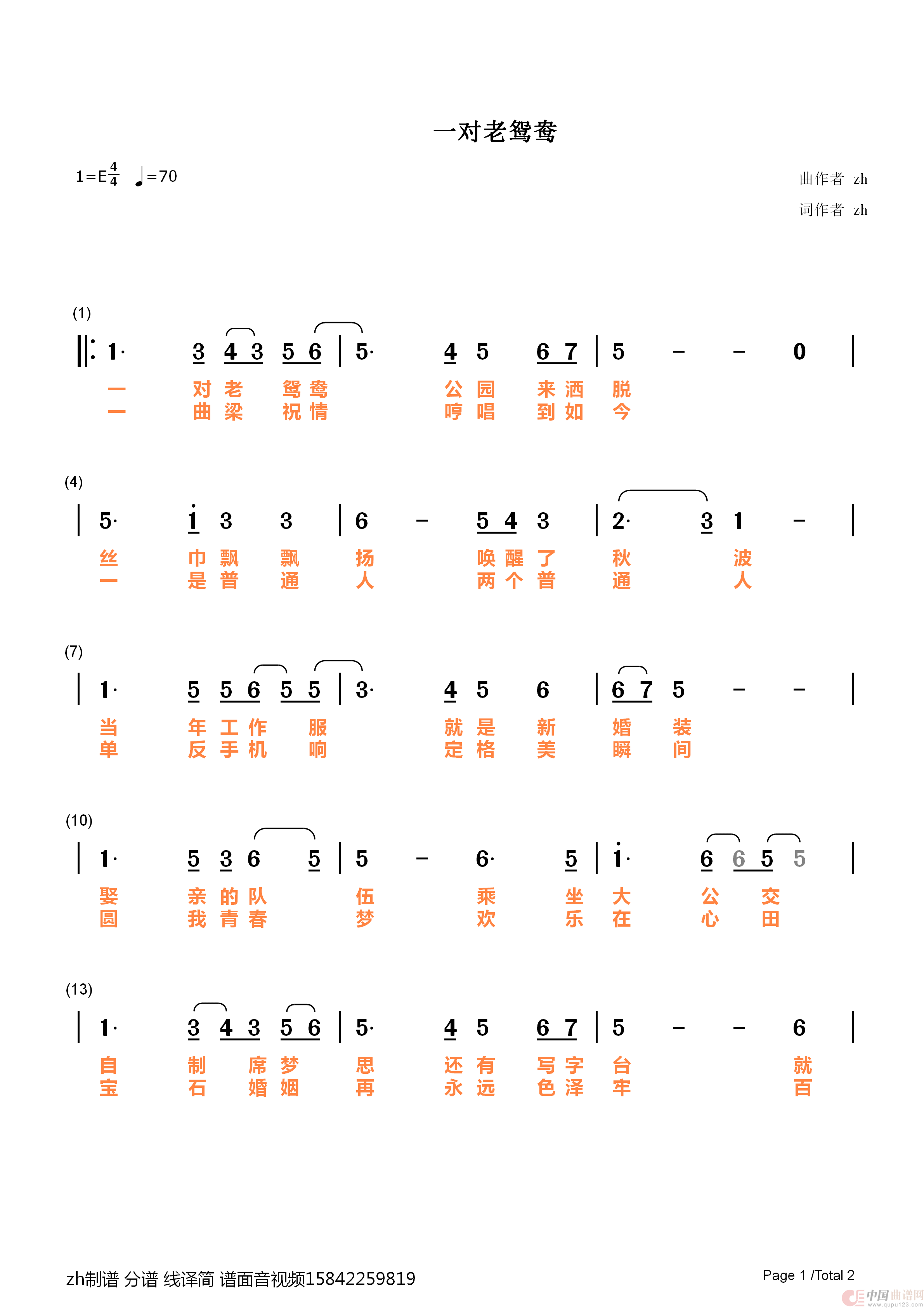 关于《一对老鸳鸯》曲谱的评论