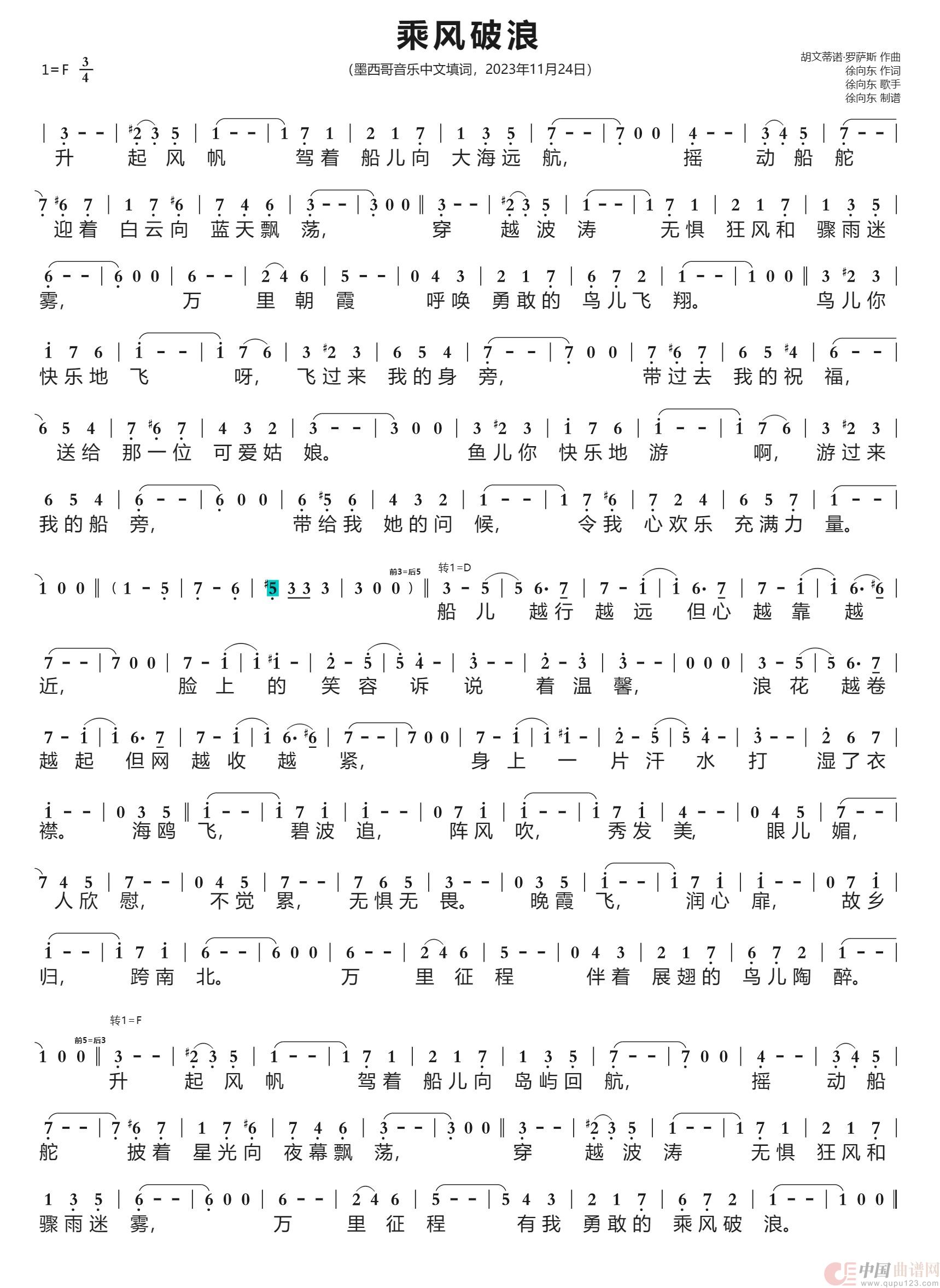 墨西哥音乐“乘风破浪”中文填词(徐向东填词)(2023年11月24日填词)