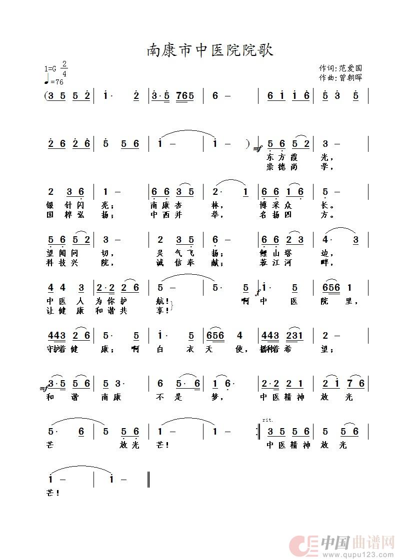 关于《南康市中医院院歌》曲谱的评论