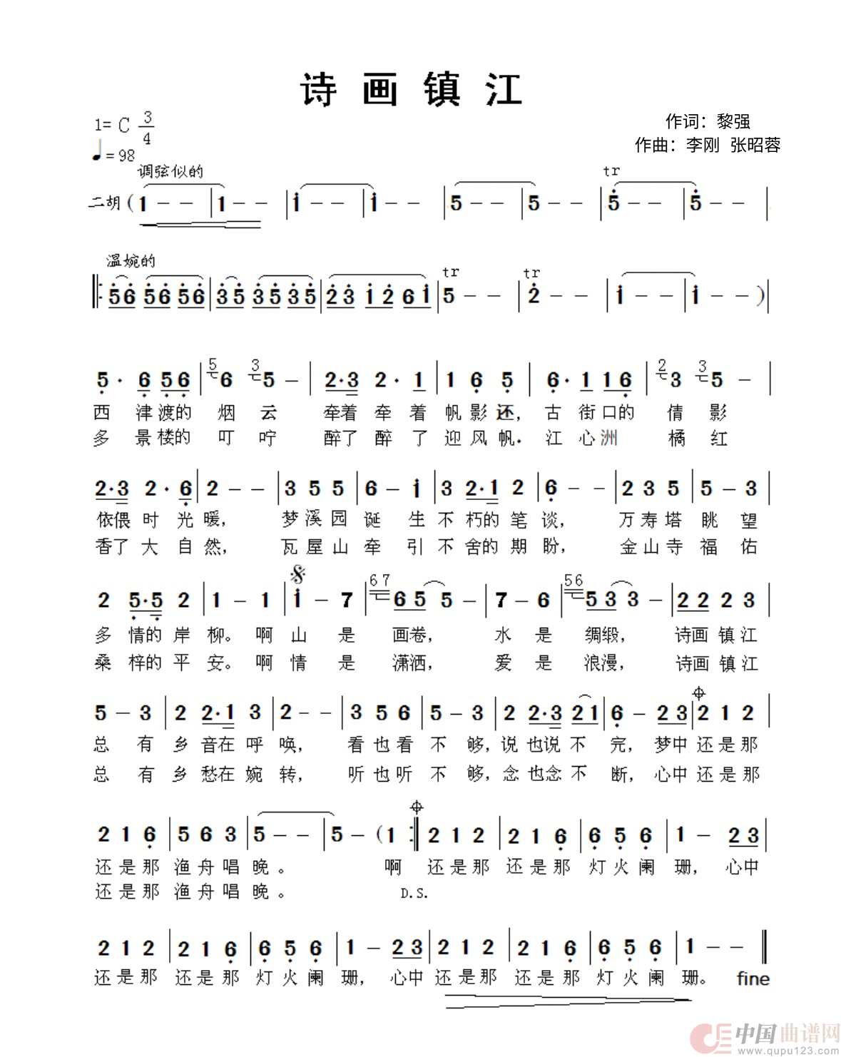 关于《诗画镇江》曲谱的评论