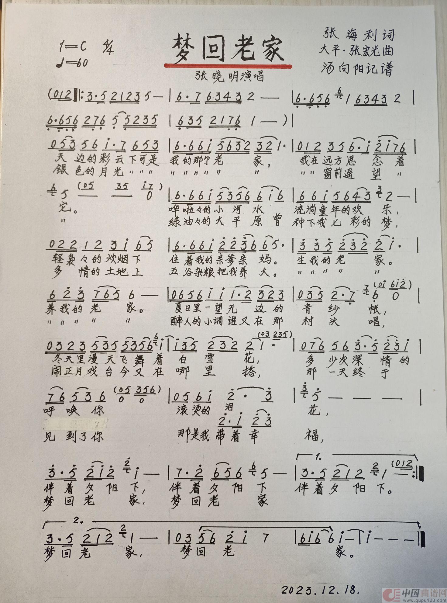 关于《梦回老家》曲谱的评论