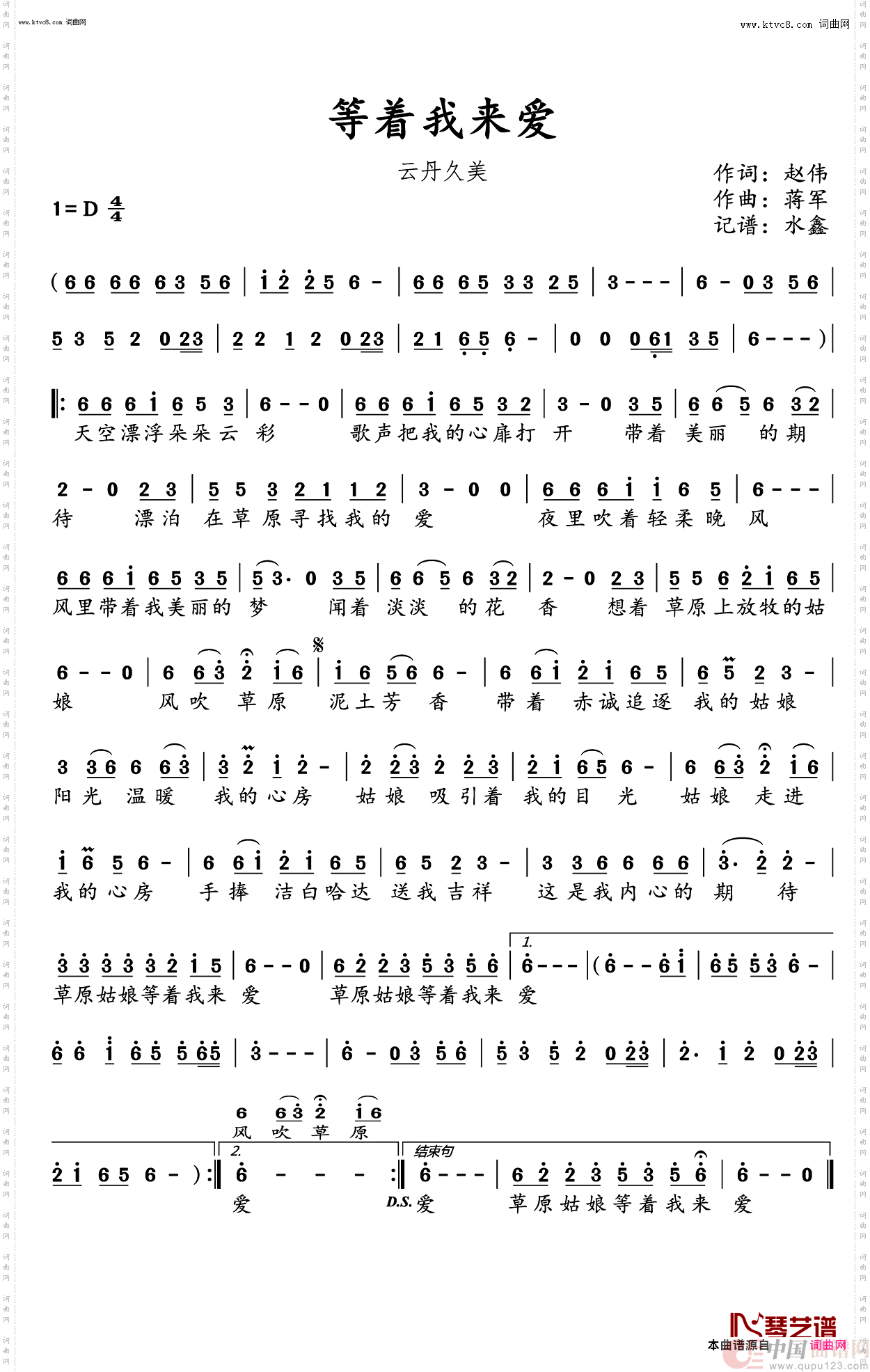提示:在曲谱图片上单击右键,选择“图片另存为...”即可将曲谱保存到您的电脑中,打印时候可将图片插入到WORD中,调整合适大小打印即可。