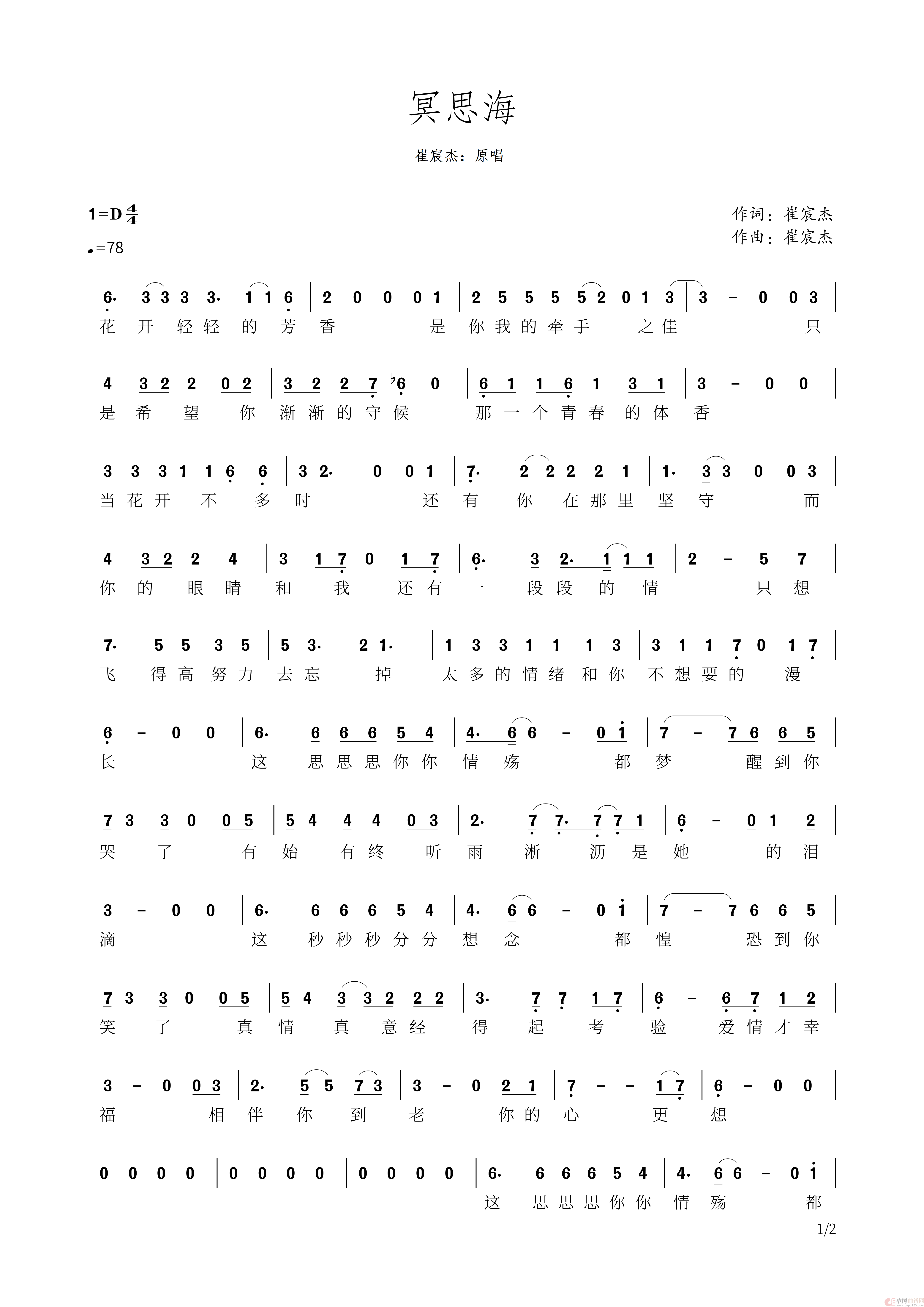 关于《冥思海》曲谱的评论