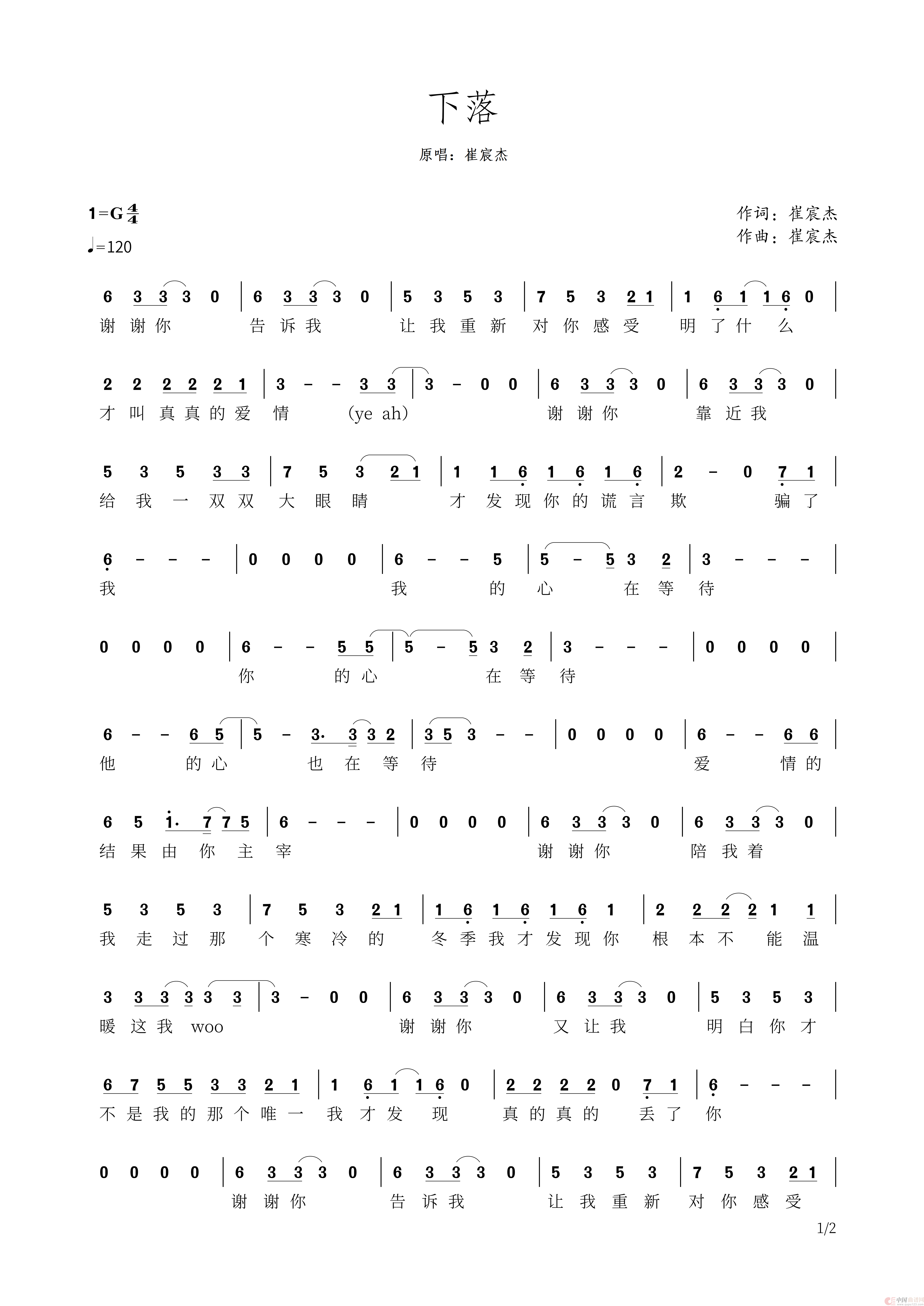 关于《下落》曲谱的评论