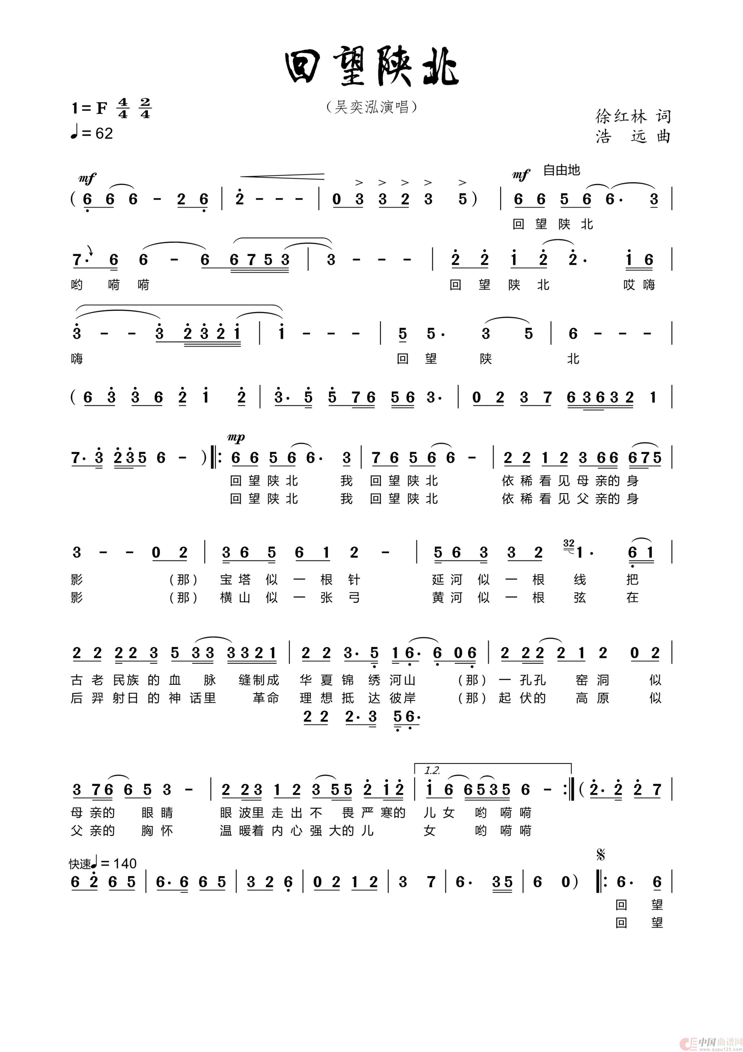 关于《回望陕北》曲谱的评论