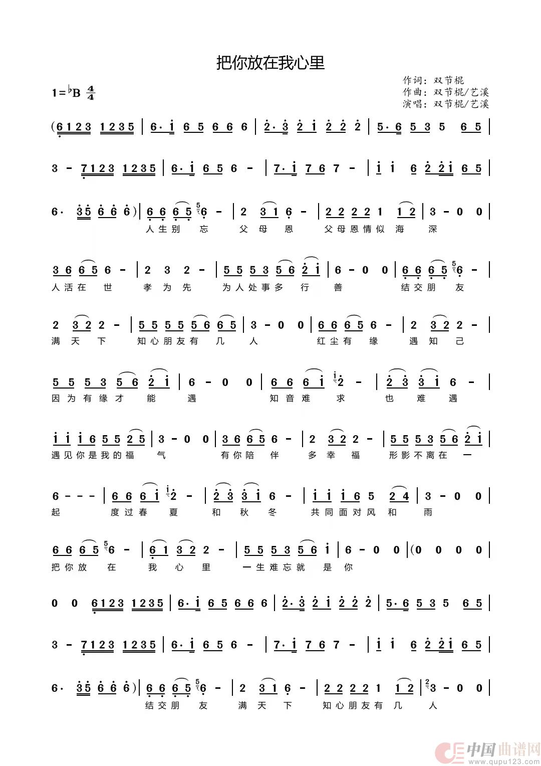 提示:在曲谱图片上单击右键,选择“图片另存为...”即可将曲谱保存到您的电脑中,打印时候可将图片插入到WORD中,调整合适大小打印即可。