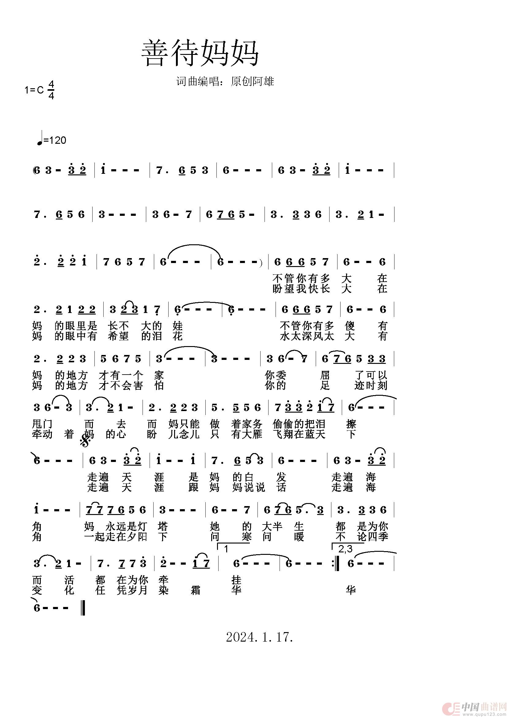 提示:在曲谱图片上单击右键,选择“图片另存为...”即可将曲谱保存到您的电脑中,打印时候可将图片插入到WORD中,调整合适大小打印即可。