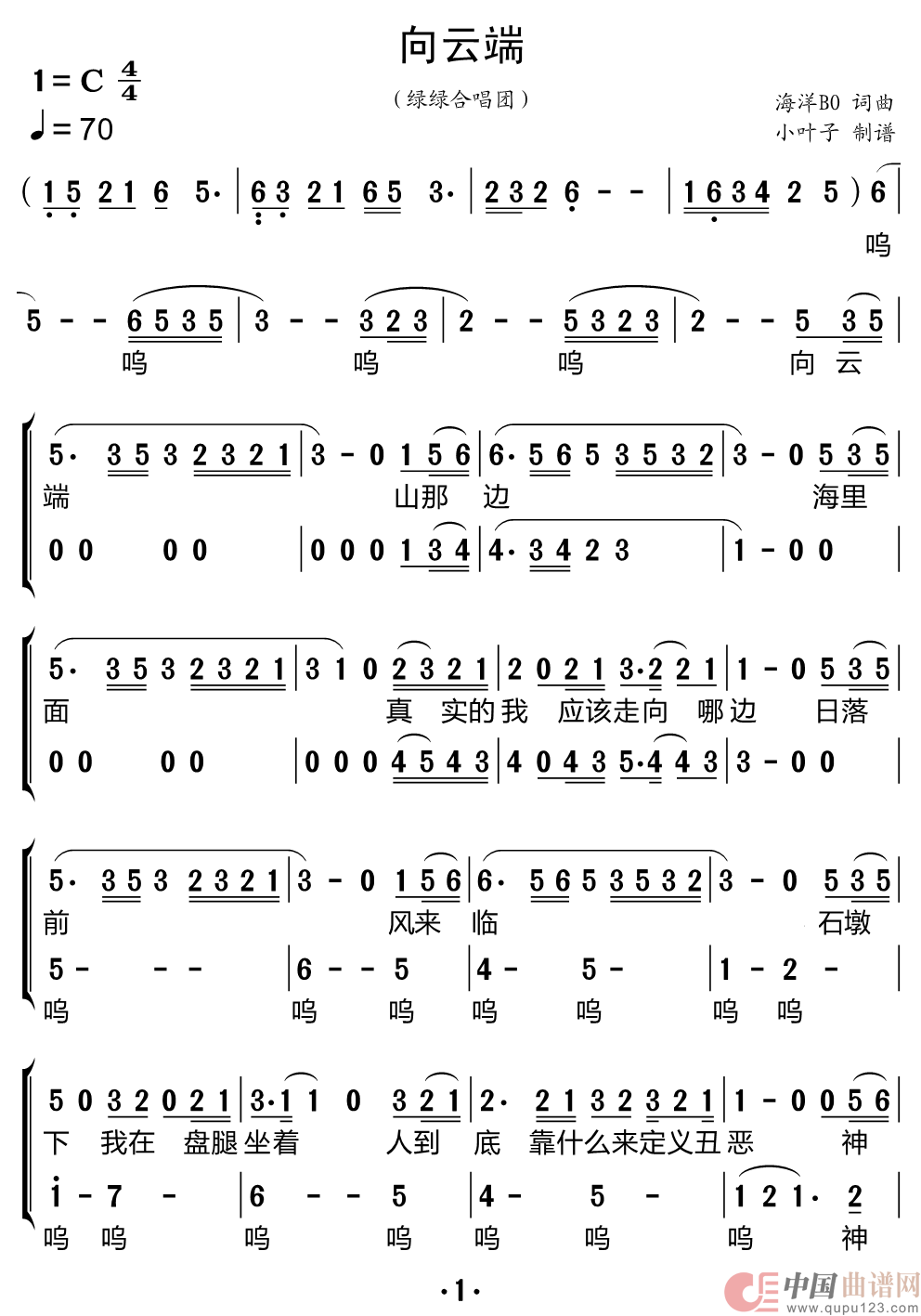 关于《向云端》曲谱的评论