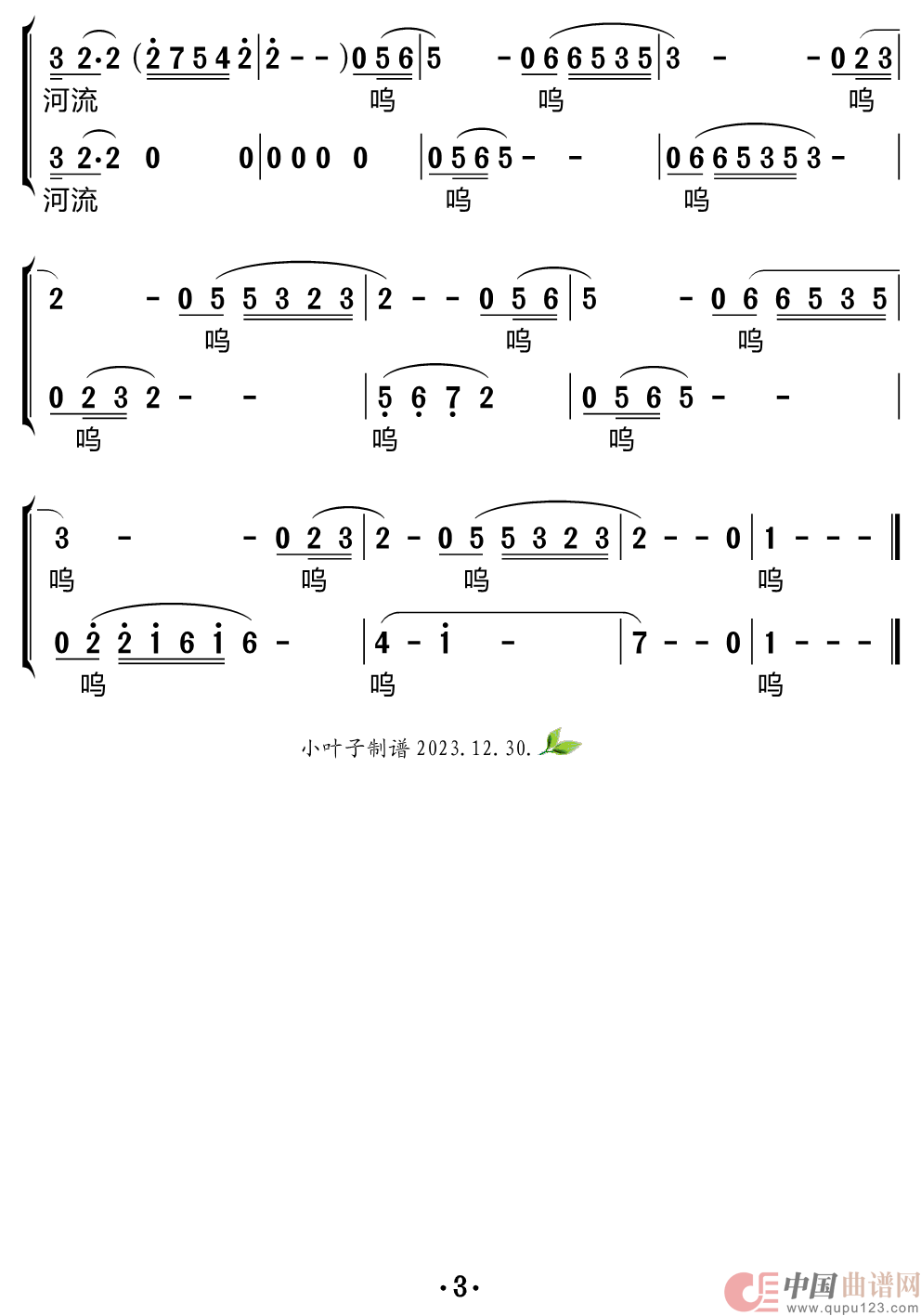 提示:在曲谱图片上单击右键,选择“图片另存为...”即可将曲谱保存到您的电脑中,打印时候可将图片插入到WORD中,调整合适大小打印即可。