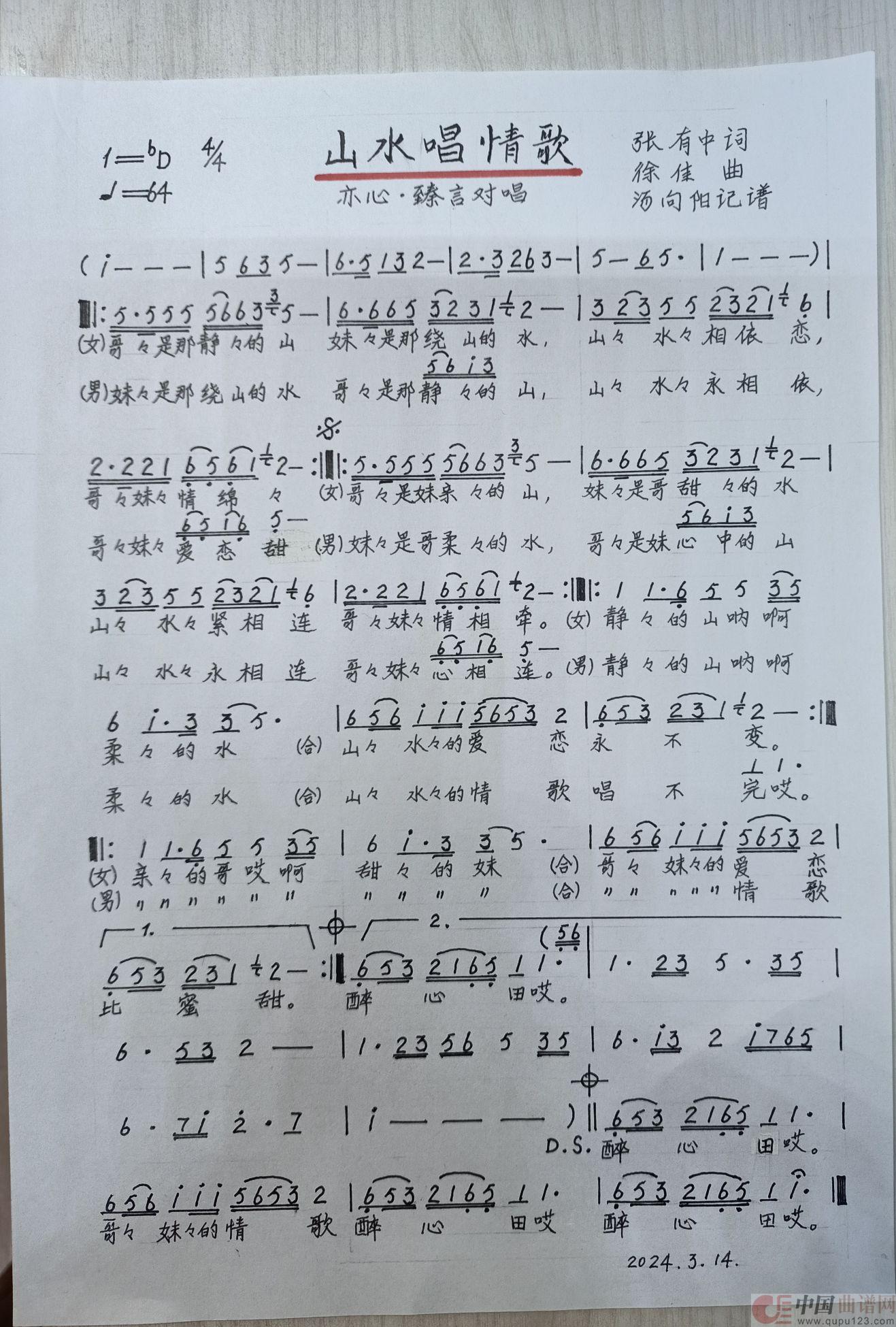 关于《山水唱情歌》曲谱的评论