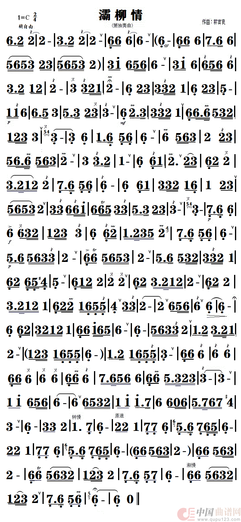 关于《灞柳情》曲谱的评论
