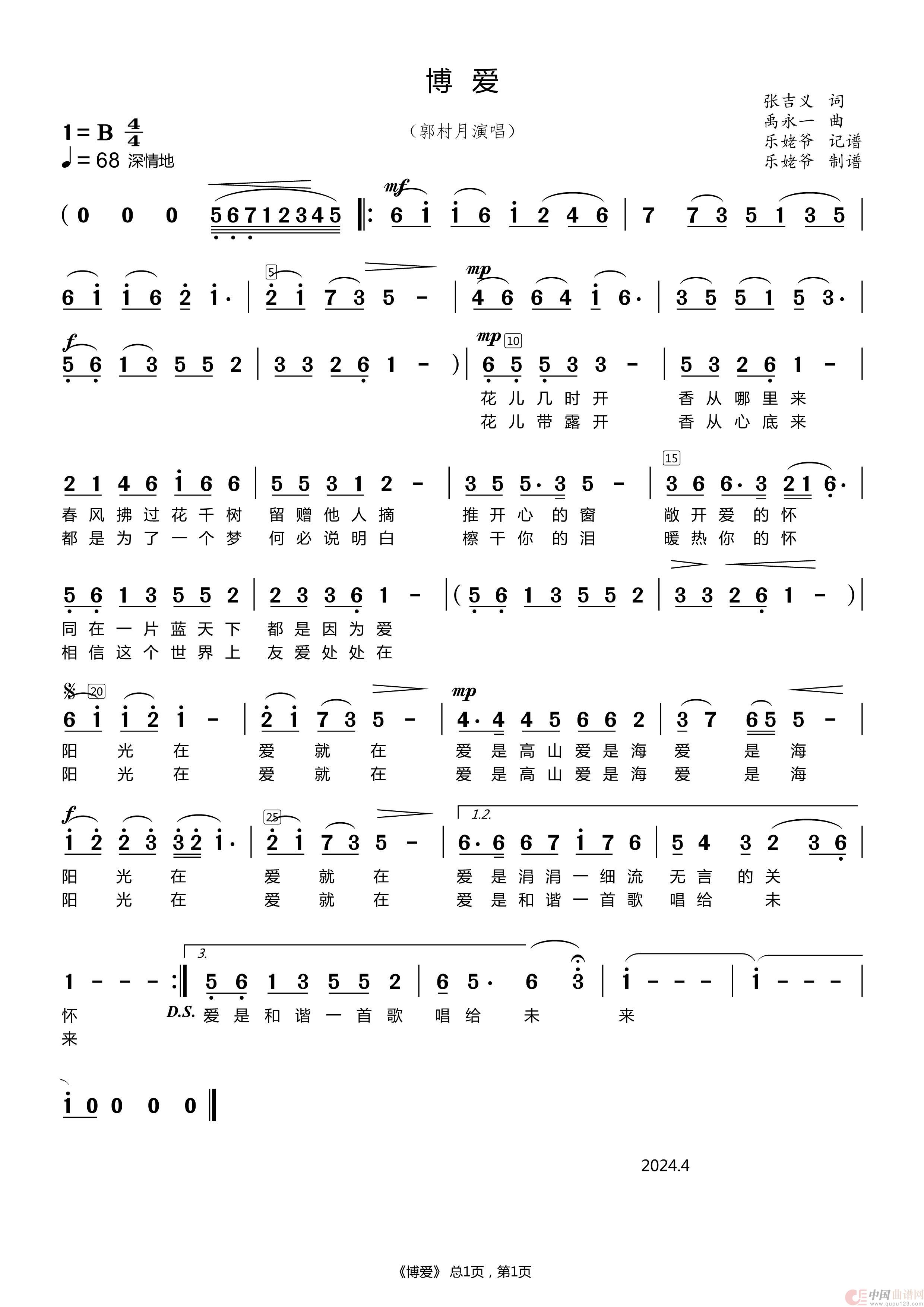 提示:在曲谱图片上单击右键,选择“图片另存为...”即可将曲谱保存到您的电脑中,打印时候可将图片插入到WORD中,调整合适大小打印即可。