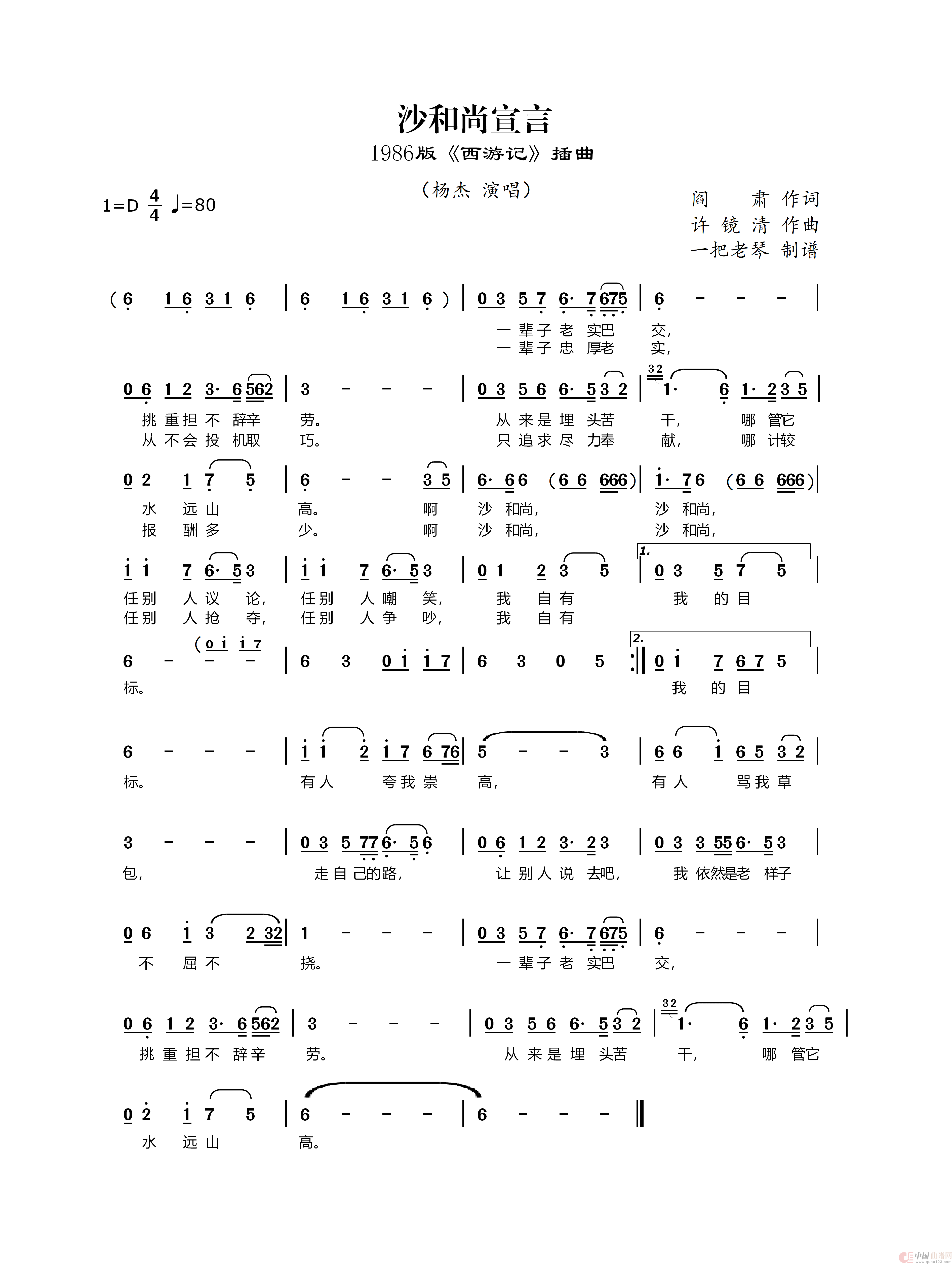 提示:在曲谱图片上单击右键,选择“图片另存为...”即可将曲谱保存到您的电脑中,打印时候可将图片插入到WORD中,调整合适大小打印即可。
