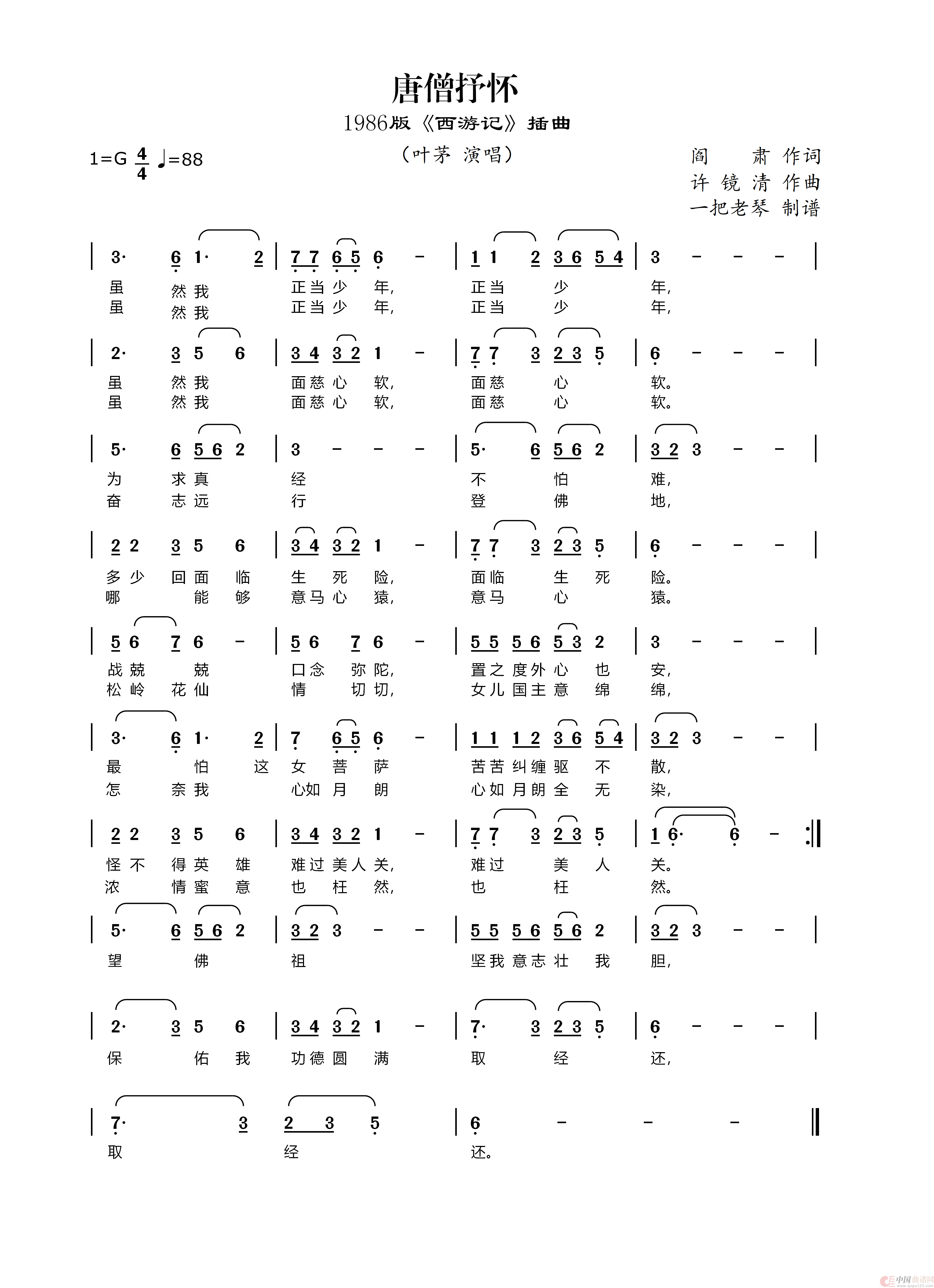 关于《唐僧抒怀》曲谱的评论