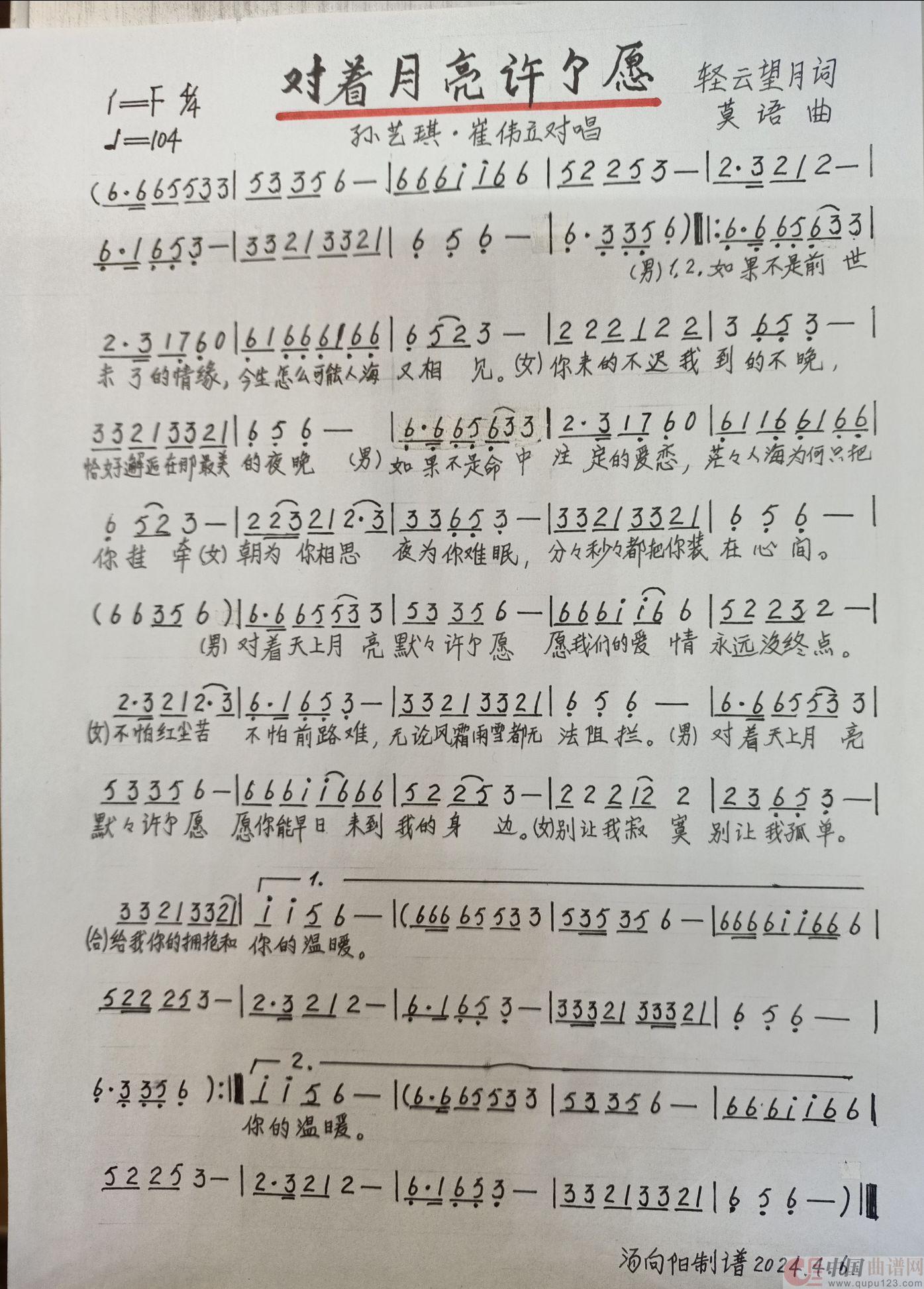 提示:在曲谱图片上单击右键,选择“图片另存为...”即可将曲谱保存到您的电脑中,打印时候可将图片插入到WORD中,调整合适大小打印即可。