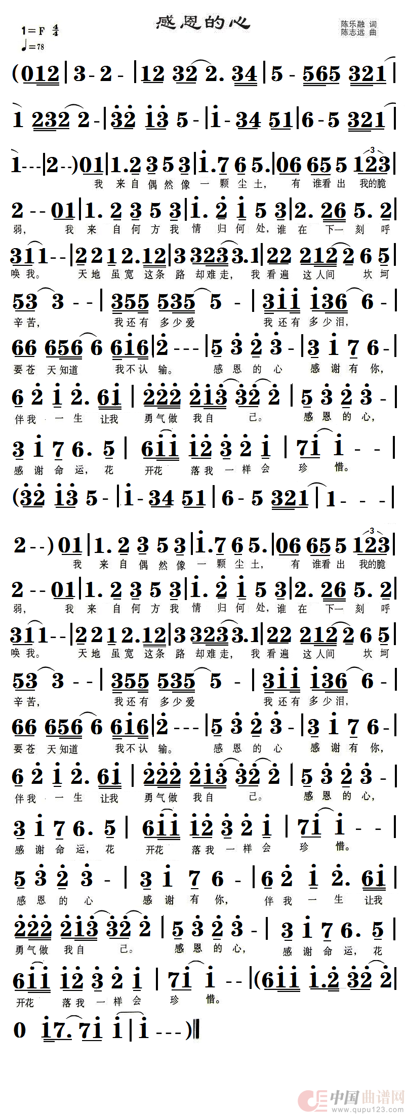 关于《感恩的心》曲谱的评论
