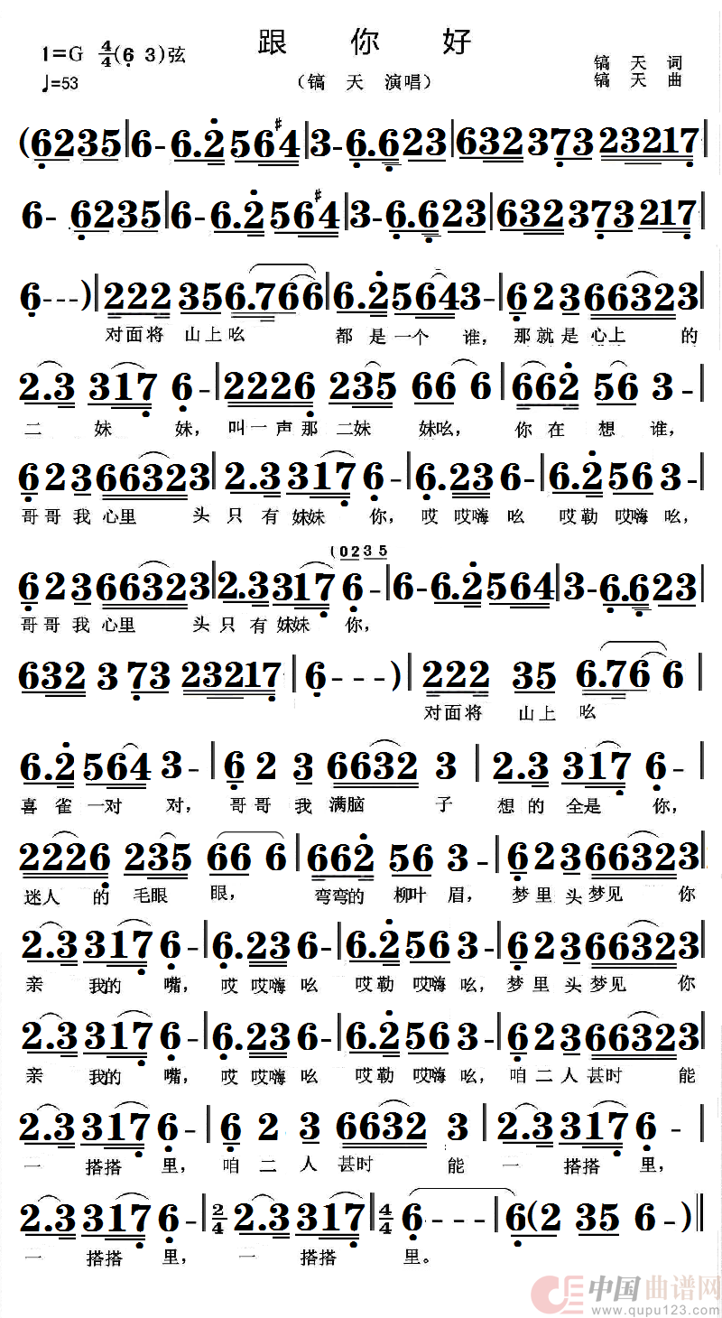 关于《跟你好》曲谱的评论