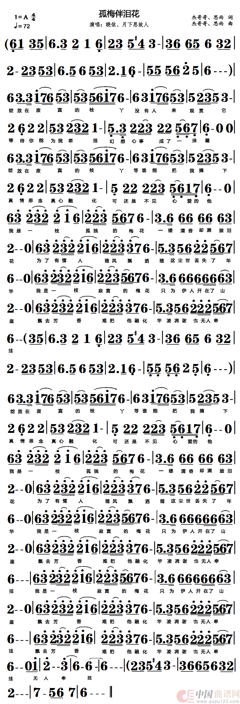 关于《孤梅伴泪花》曲谱的评论