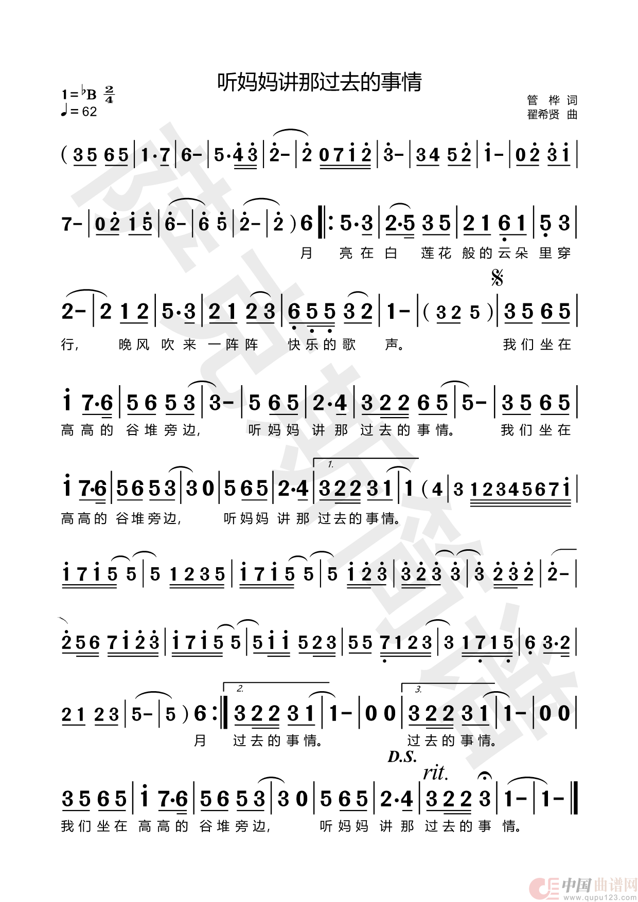 关于《听妈妈讲那过去的事》曲谱的评论