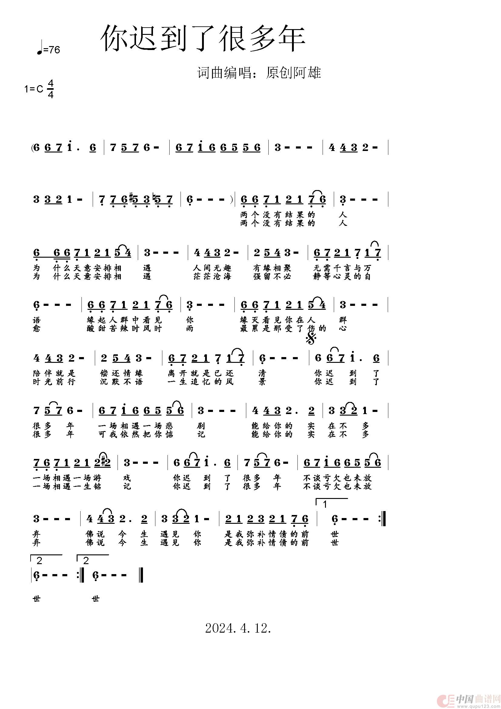 提示:在曲谱图片上单击右键,选择“图片另存为...”即可将曲谱保存到您的电脑中,打印时候可将图片插入到WORD中,调整合适大小打印即可。