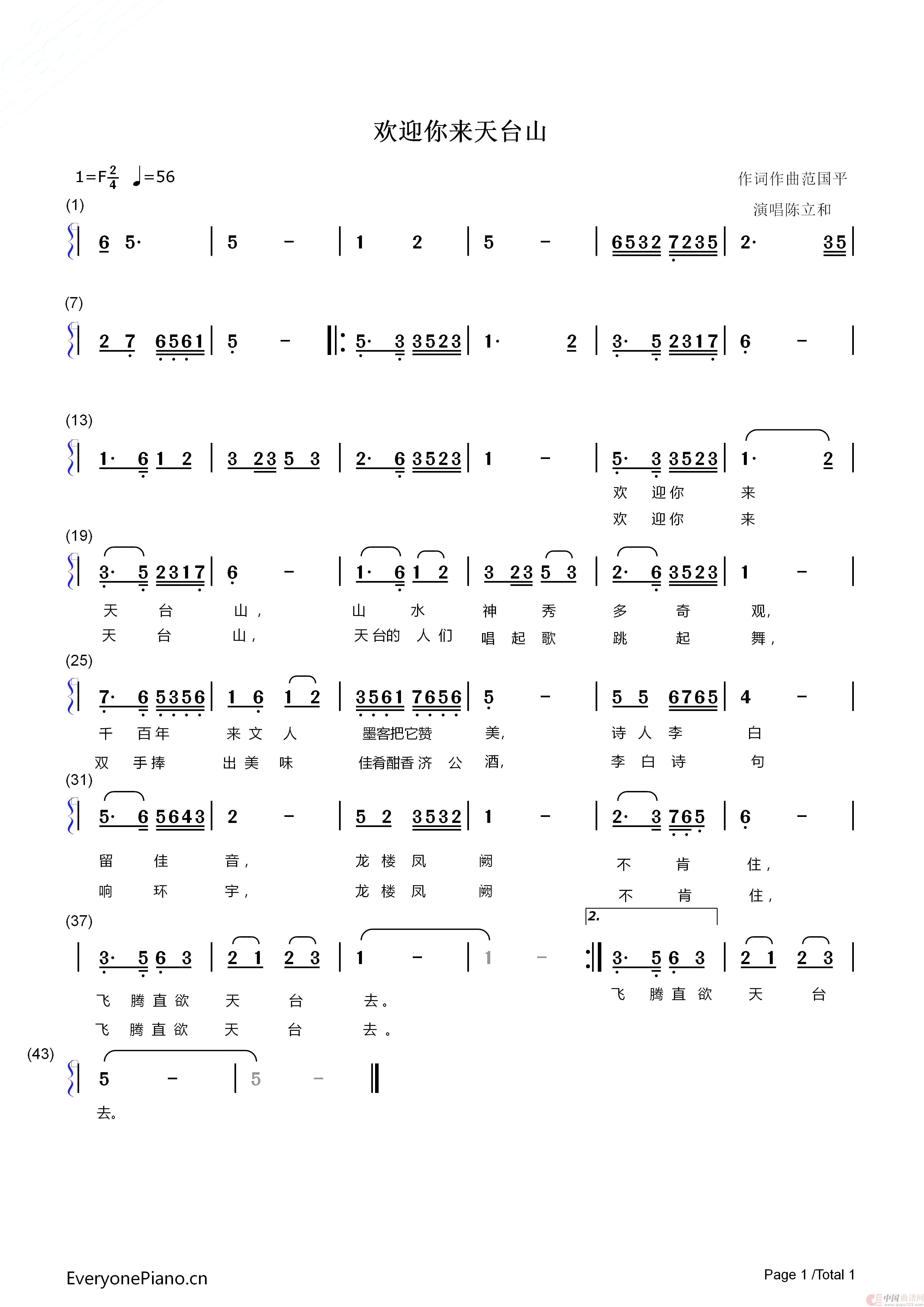 提示:在曲谱图片上单击右键,选择"图片另存为..."即可将曲谱保存到您的电脑中,打印时候可将图片插入到WORD中,调整合适大小打印即可。