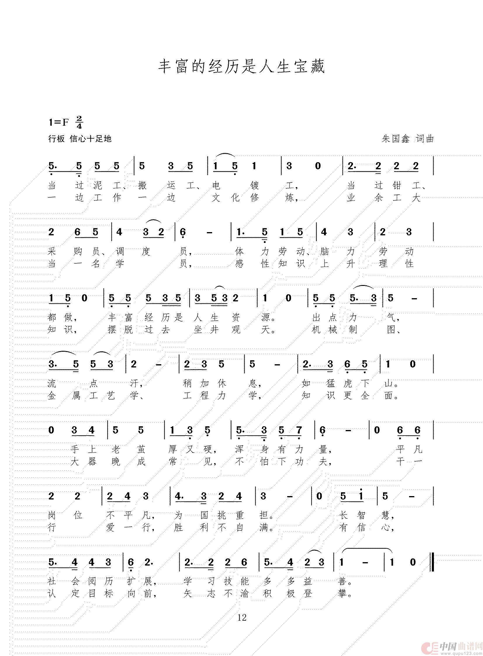 关于《丰富的经历是人生的宝藏》曲谱的评论