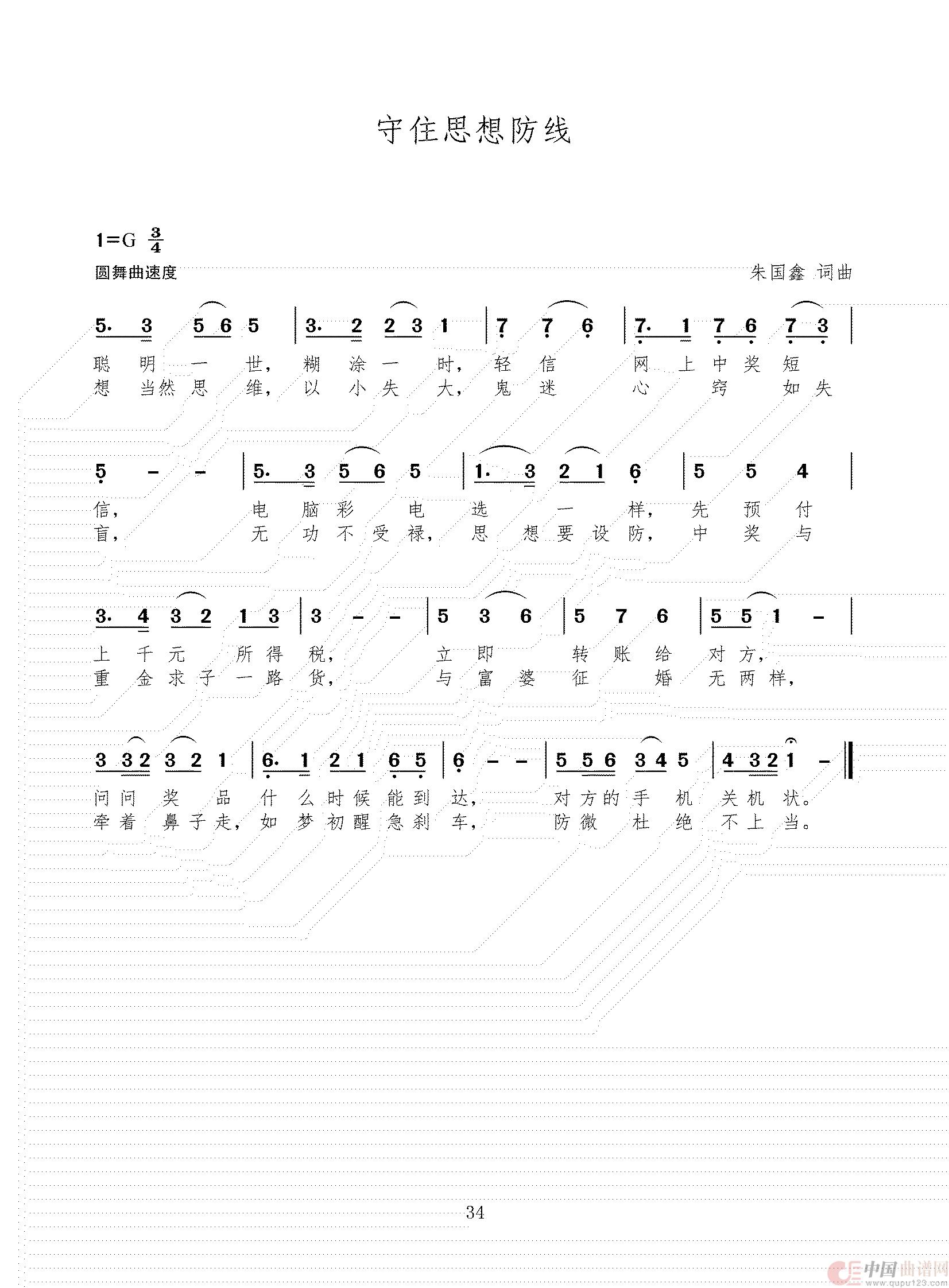 关于《守住思想防线》曲谱的评论