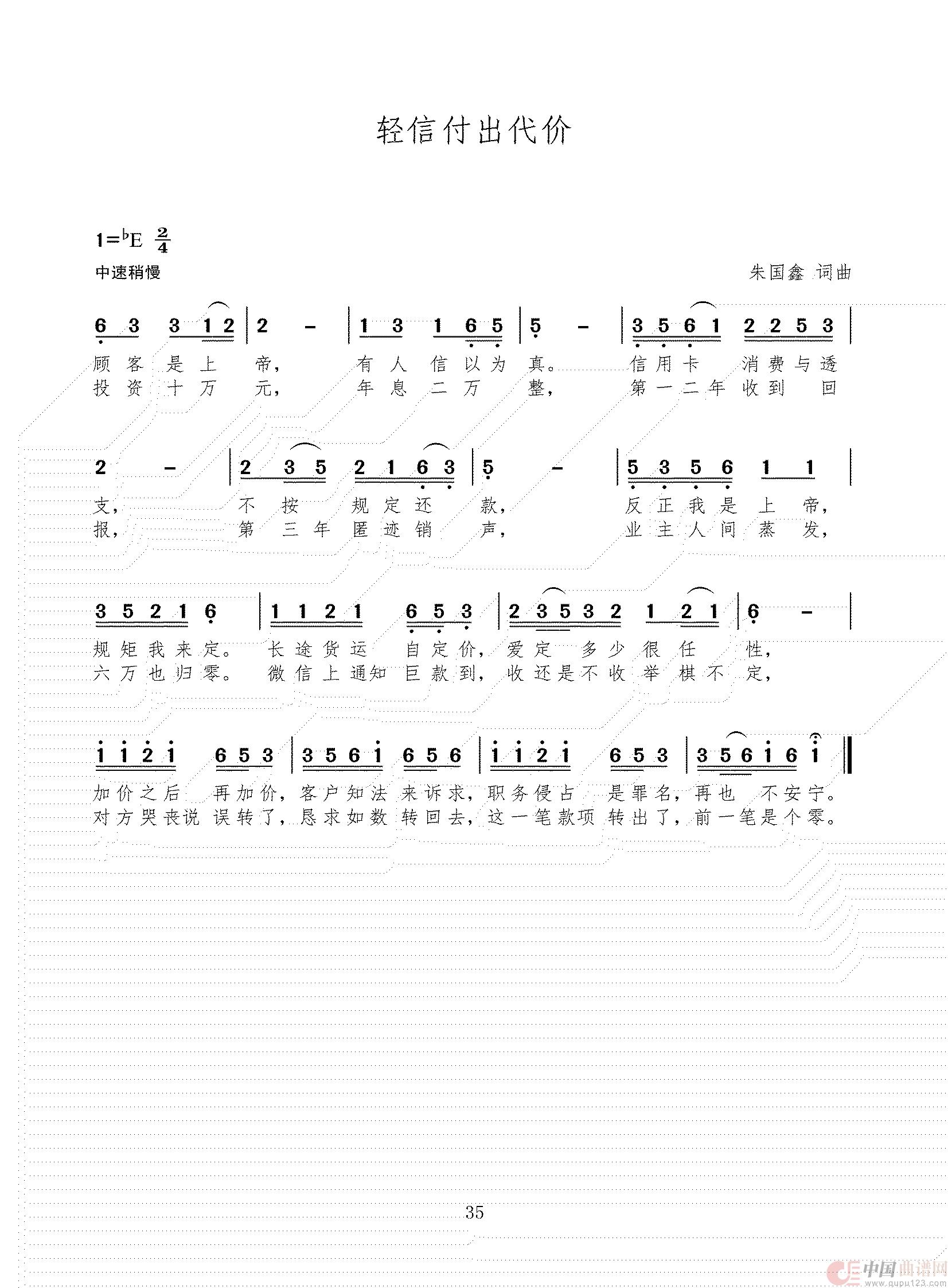 关于《轻信付出代价》曲谱的评论
