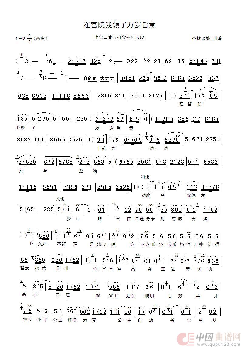 关于《在宫院我领了万岁旨意》曲谱的评论
