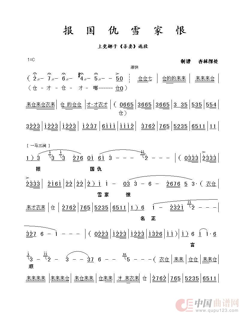 关于《报国仇雪家恨名正言顺》曲谱的评论